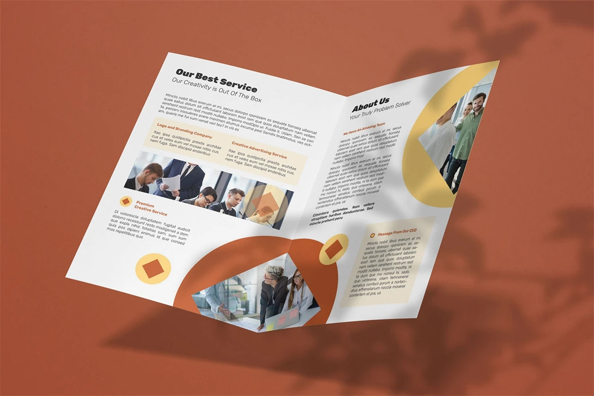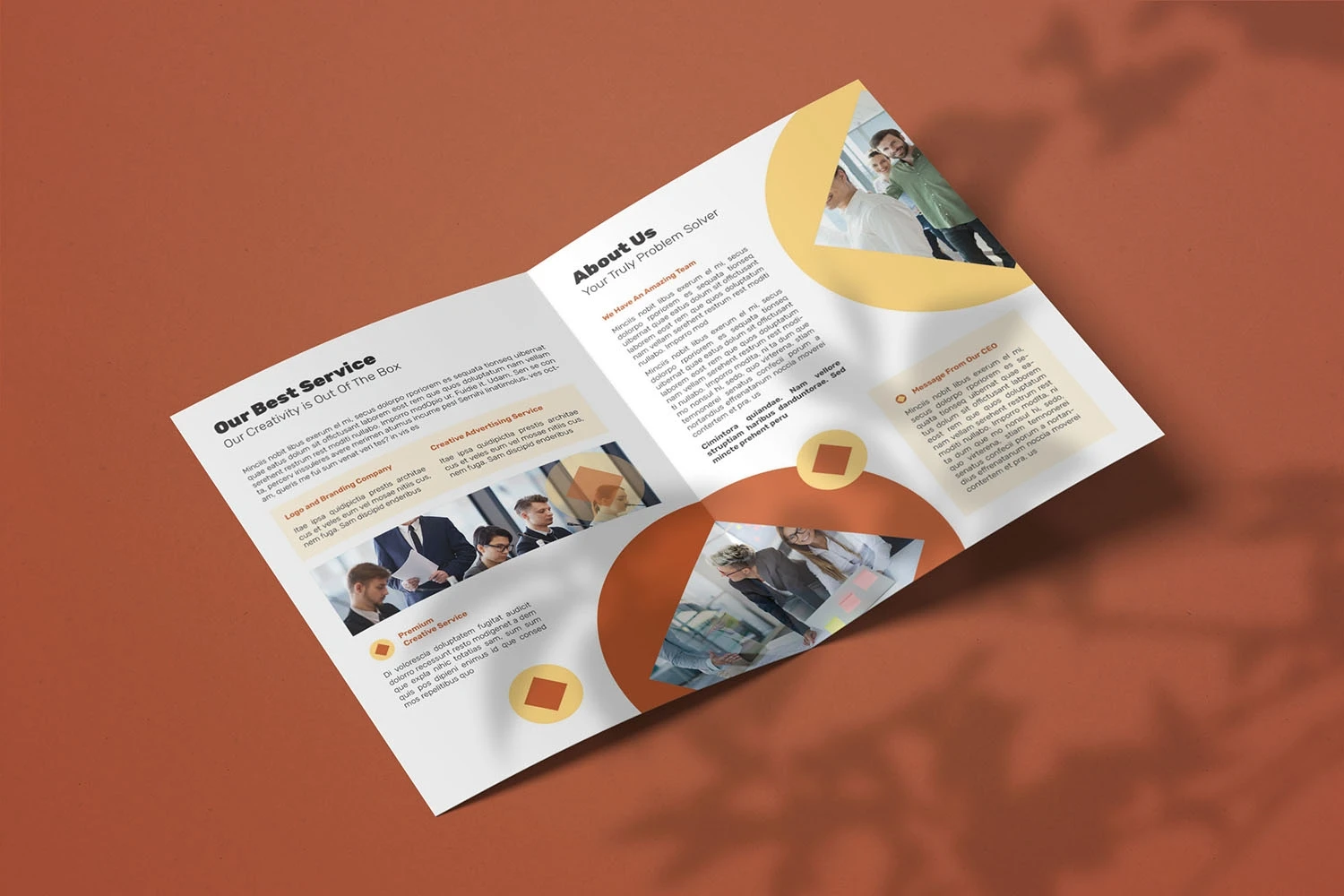 Orange Bussiness - Bifold Brochure We present this Bifold Brochure for you, simple and very elegant, and this Bifold Brochure is suitable for all types of your business, made with adobe inDesign, very easy to customize, Hope you Like it, dont forget to rate, Thanks.