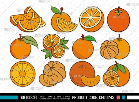 Enhance your creative projects with our delightful Orange Clipart bundle, featuring juicy Kinnow Mandarin slices and other sweet summer fruit elements. This SVG cut file bundle is perfect for adding a vibrant and refreshing touch to your designs, whether it's for print, digital, or craft projects.
