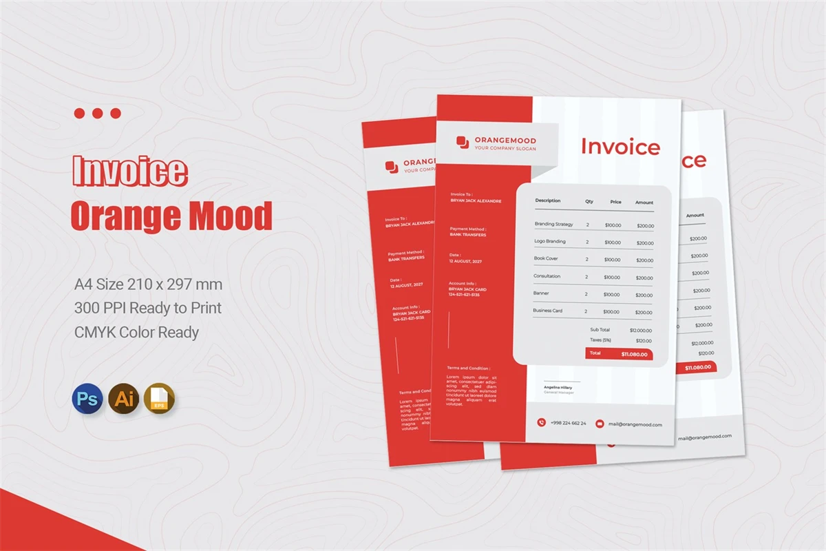 Use our invoices to make your bookkeeping easier and to impress your clients with an invoice display that has a modern, elegant design and strong typography. This invoice template is easy to use and customizable, making it perfect for any medium.