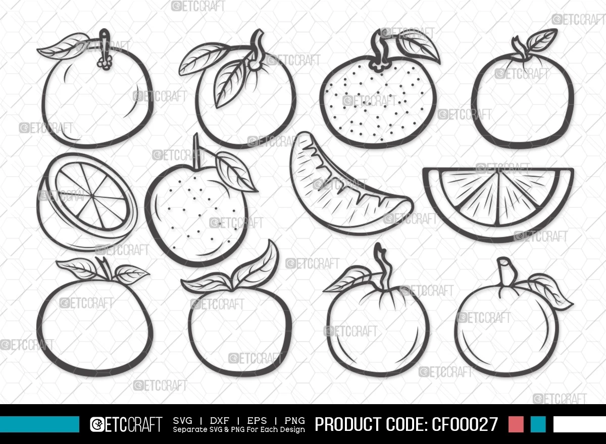Elevate your creative projects with our vibrant Orange Outline Summer Fruit Half Slice SVG Cut File. Let the zest of summer shine through your crafts with this delightful bundle!