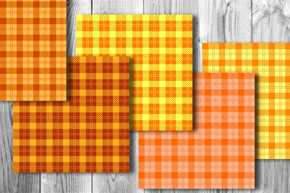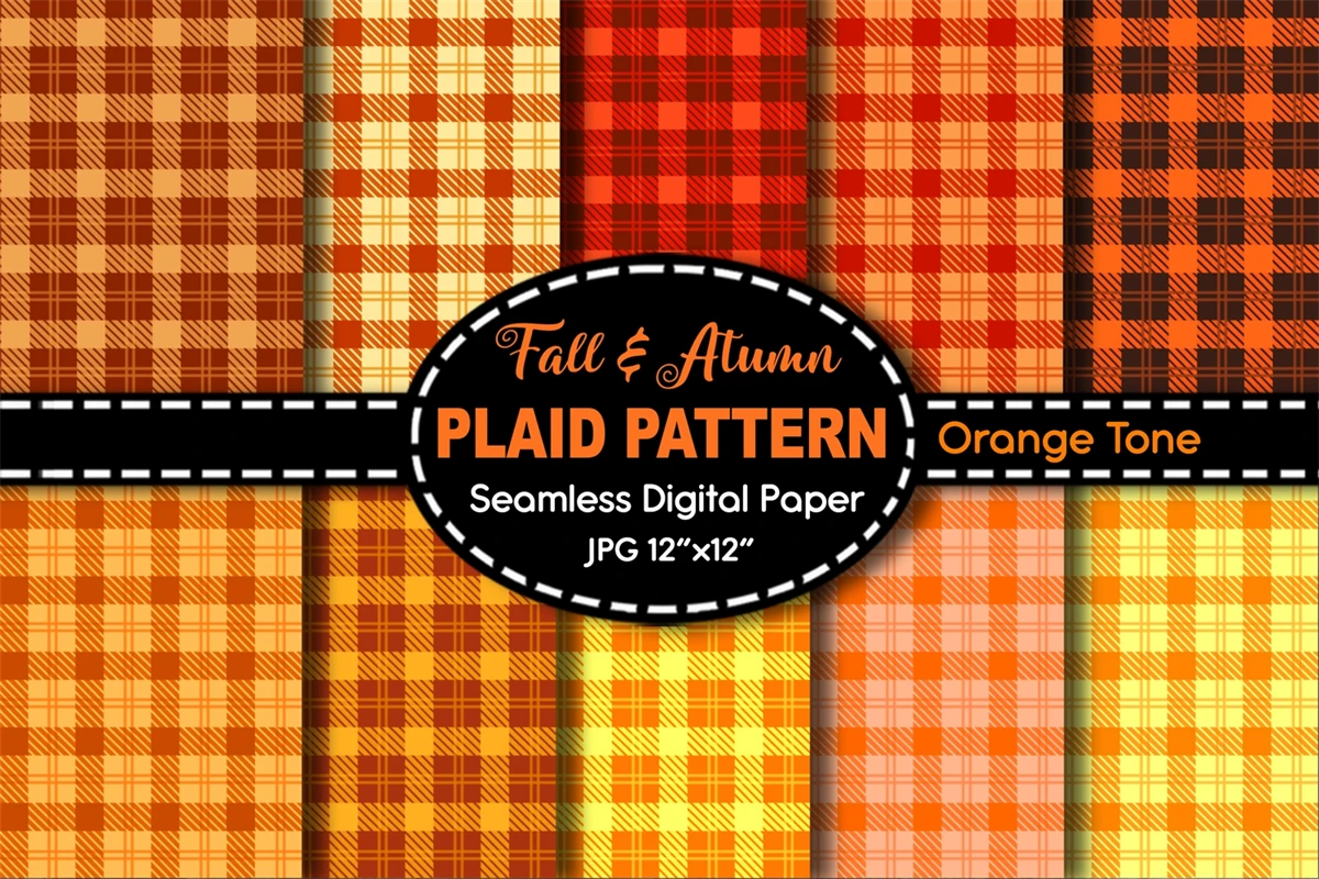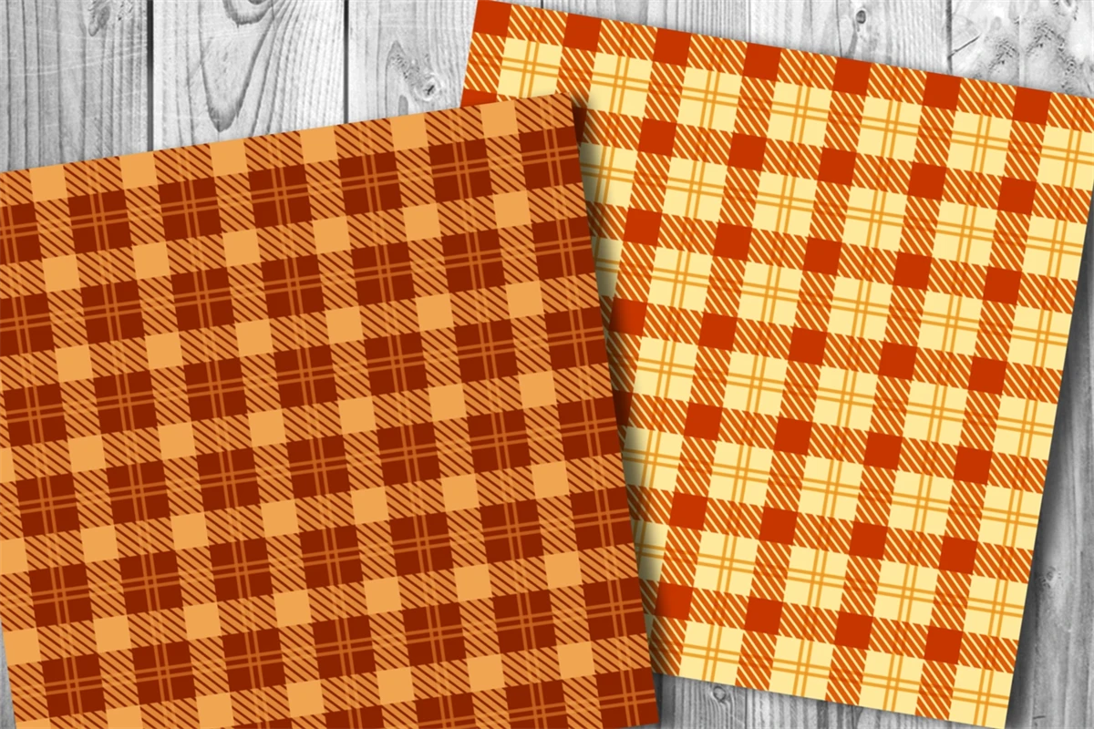 Orange Tone Color Plaid Design Seamless Pattern Digital Paper for Fall & Autumn Theme