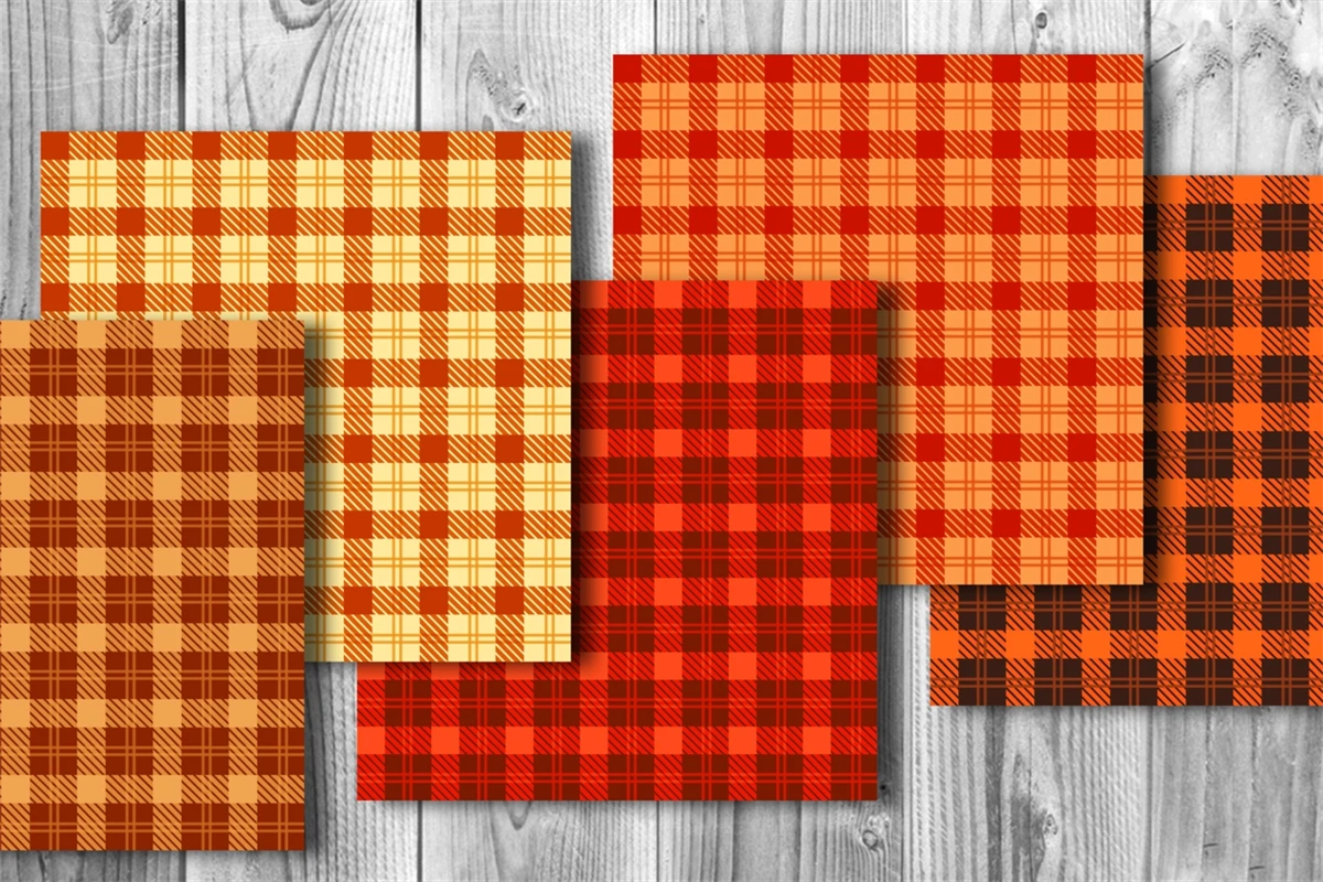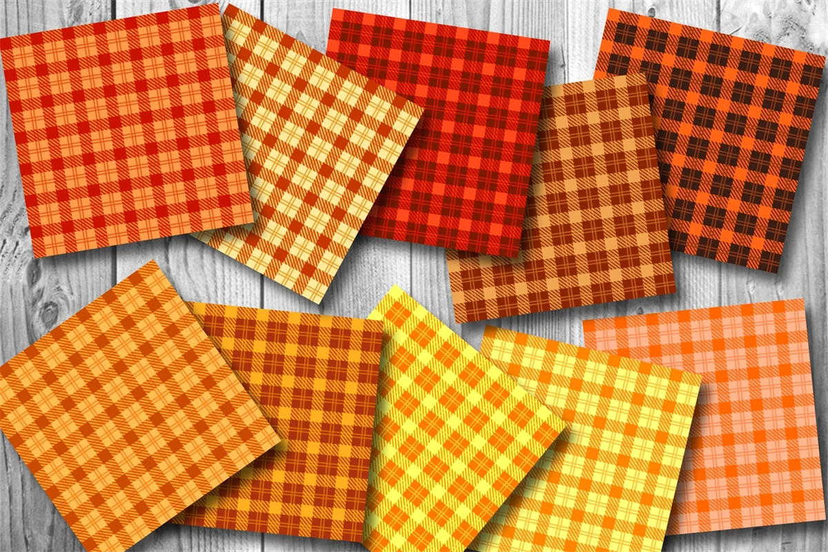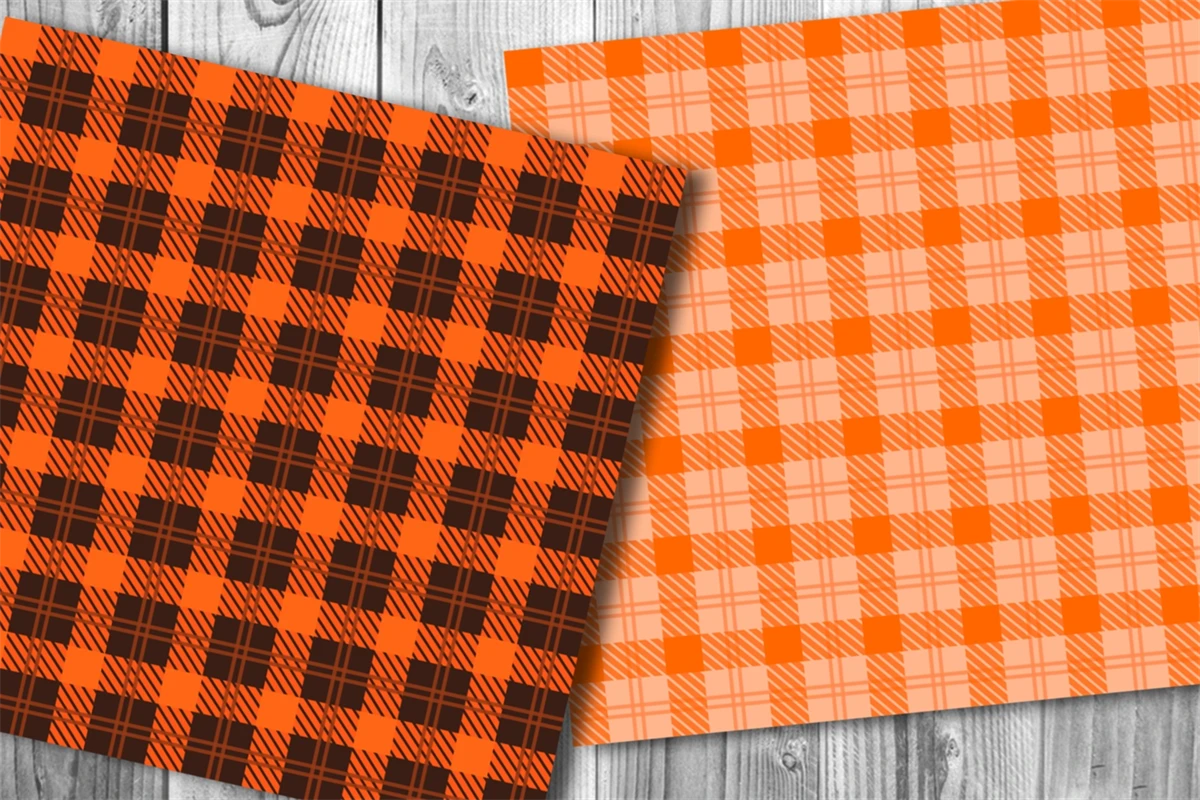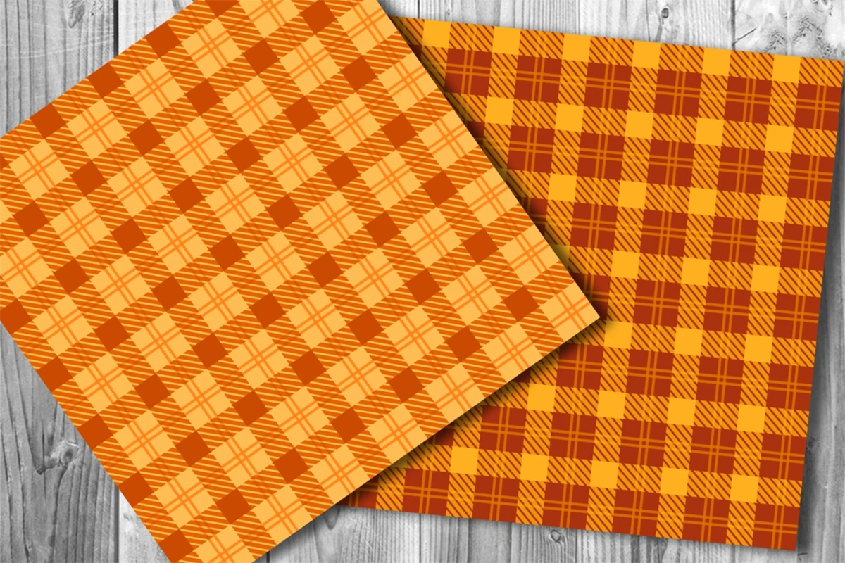Orange Tone Color Plaid Design Seamless Pattern Digital Paper for Fall & Autumn Theme
