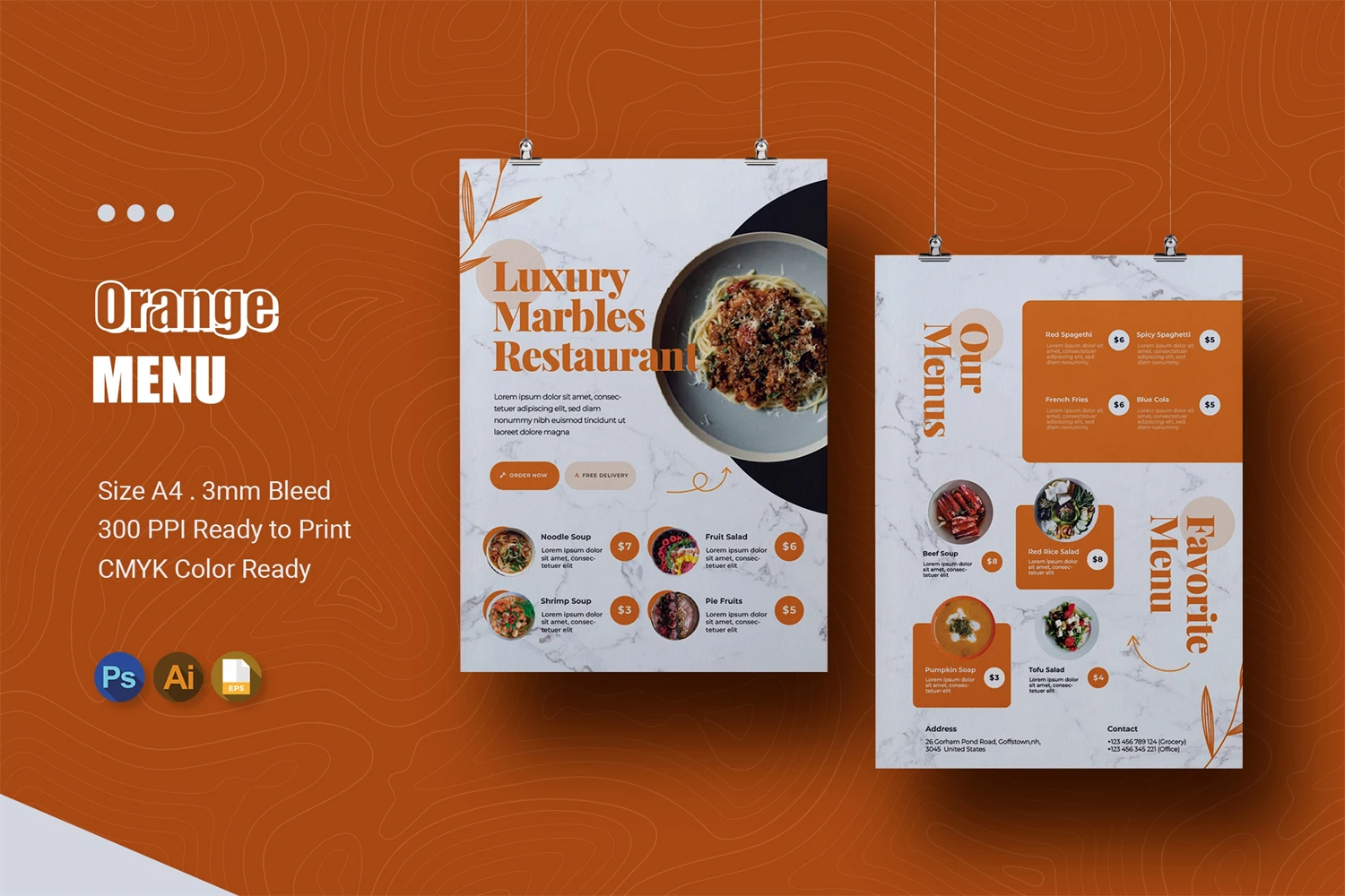 This Menu is great for displaying your restaurant menu in an eye pleasing way. Attracting customers with an easy-to-read restaurant menu certainly makes closing easier, right? easily editable according to your needs, this restaurant menu is perfect for promos, cafes, hotels, resort shops online etc.