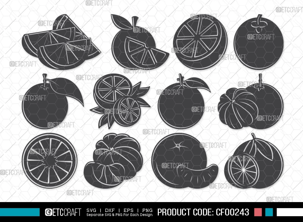 Immerse your designs in the sunny sweetness of summer with our Orange Silhouette SVG Cut File Bundle. Featuring the delightful essence of Kinnow Mandarin slices and an array of sweet summer fruits, this bundle is your ticket to infusing a burst of freshness into your creative projects, whether for digital designs, prints, or crafts.