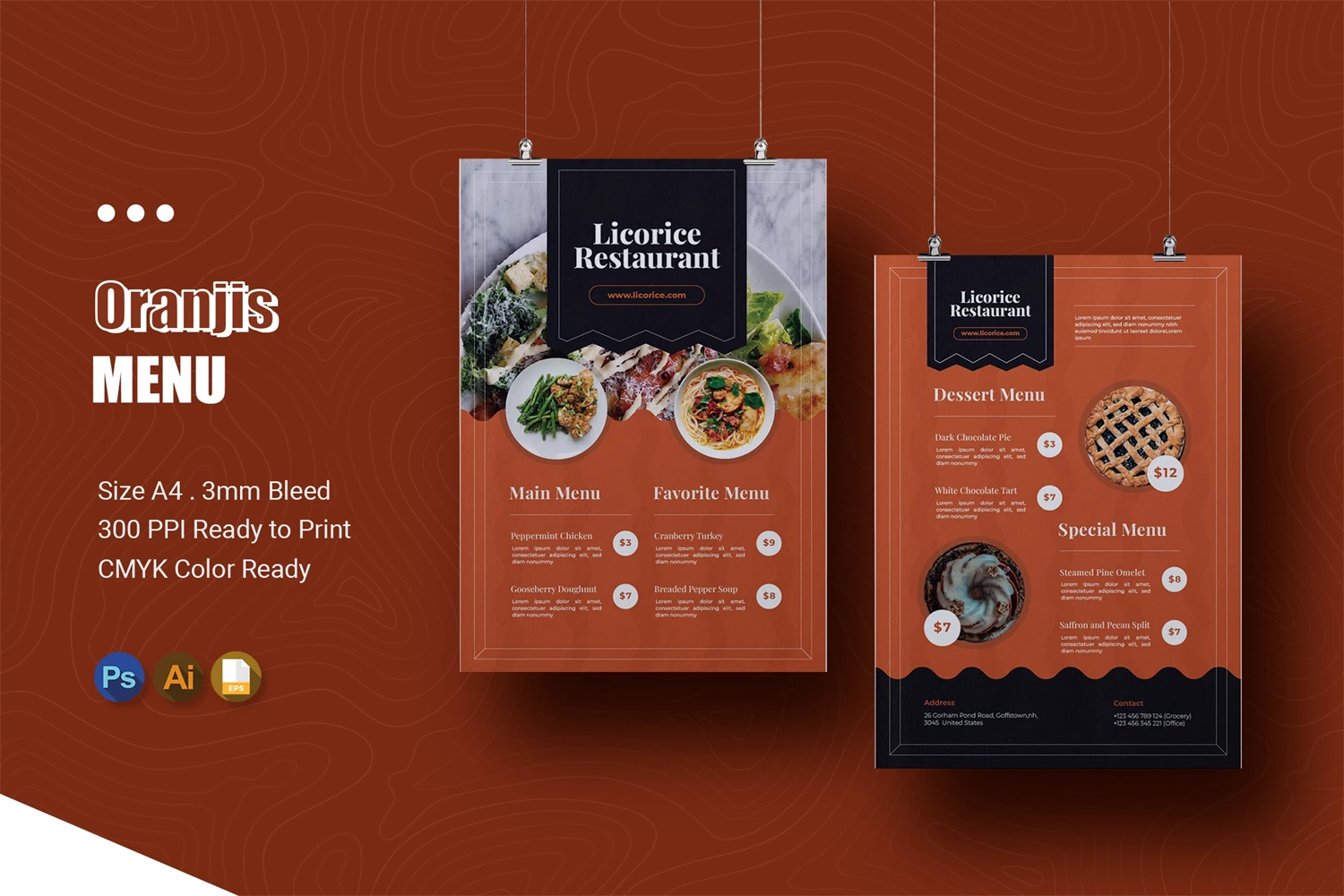 This Menu is great for displaying your restaurant menu in an eye pleasing way. Attracting customers with an easy-to-read restaurant menu certainly makes closing easier, right? easily editable according to your needs, this restaurant menu is perfect for promos, cafes, hotels, resort shops online etc.