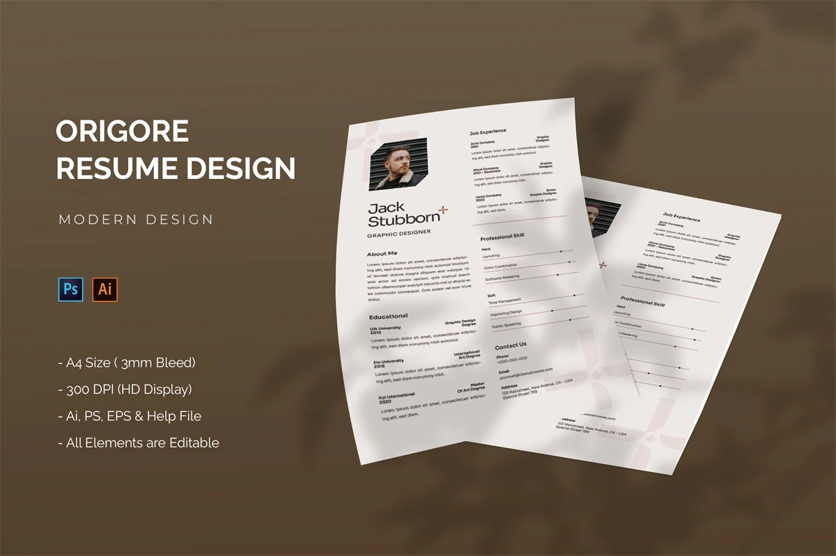 This is **Origore - Resume Template** Get it now!, CV Resume for All business and personal needs. This design is great for your business and will make your interest, elegant, and easily editable according to your needs (**Adobe Illustrator, Adobe Photoshop**). You can use this CV Resume for personal purposes, or company purposes, I hope you enjoy this, Hope you Like it, and dont forget to rate it, Thanks.