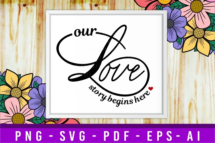 Our Love Story Begins Here, Wedding Sign Quote Design SVG Cut Files