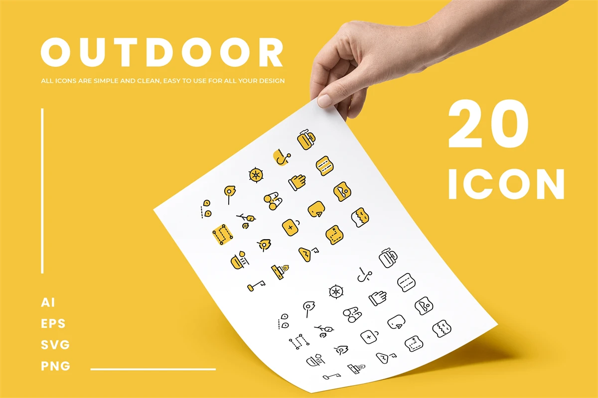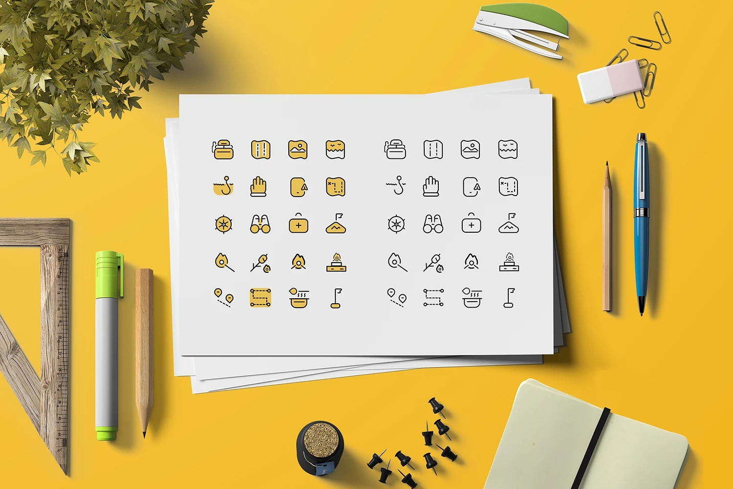 Don't miss it Outdoor - Icons This professional Icons pack, high quality, for professional designers, easy to use, fully editable & customizable in Adobe Illustrator