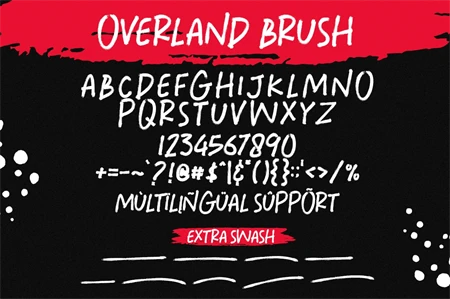 The Overland Brush is best suited for any design project, such as posters, banners, logos, book covers, album covers, quotes, invitations, greeting cards, business cards, titles, print products, merchandise, social media, etc. Find out more ways to use this font by previewing the font.