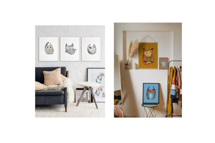 Watercolor illustration with funny owls will help you in creating your various designs, postcards, invitations, suitable for printing on fabric, packaging goods and much more.
