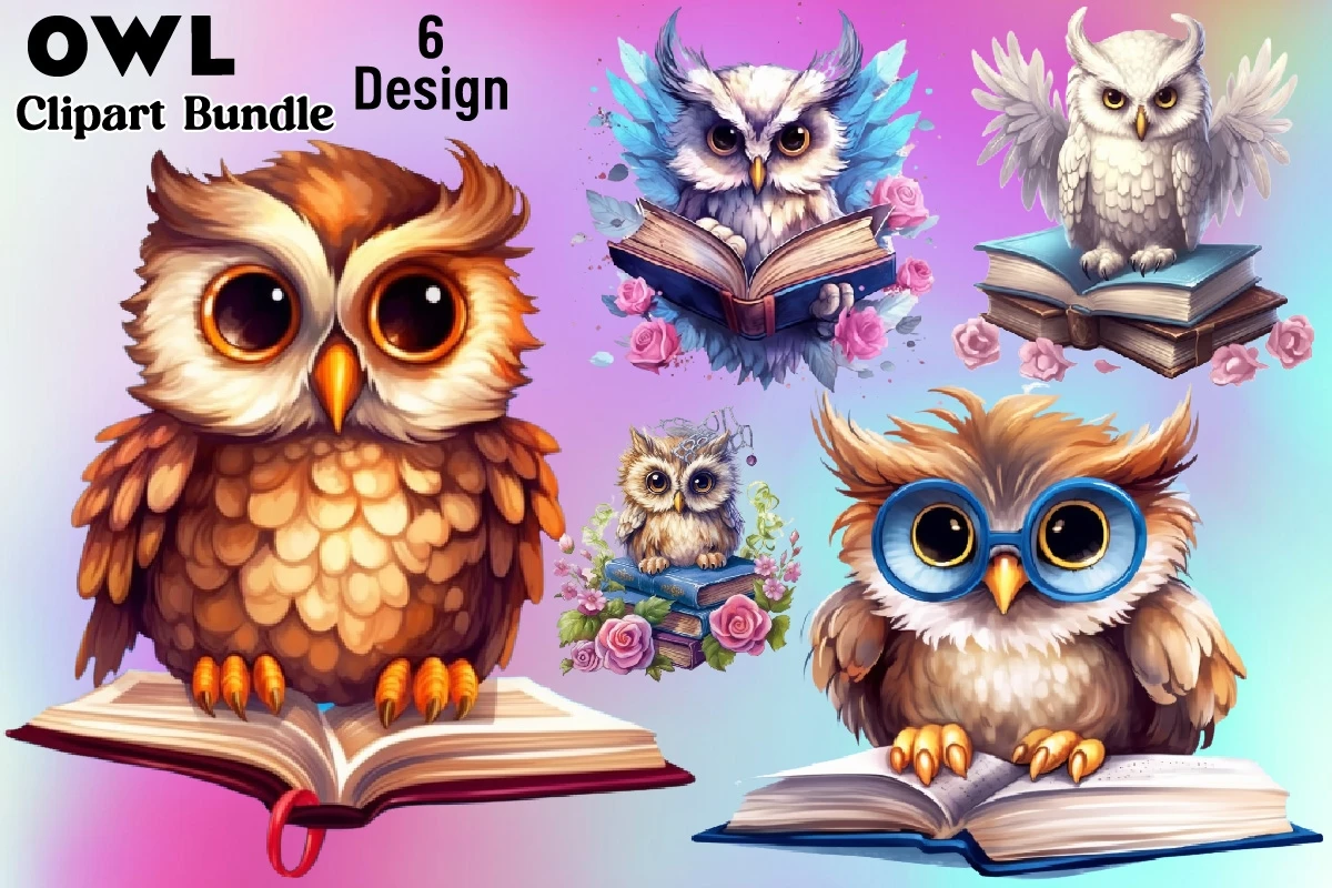 Watercolor Owl Clipart PNG Bundle