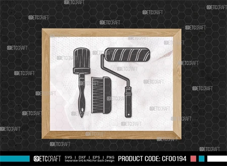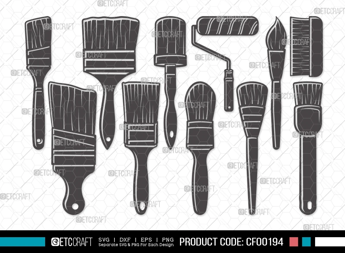 Explore endless creative possibilities with the Paint Brush Silhouette Paint Roller Brushes Painting Kit SVG Cut File Bundle. Download now and bring your artistic visions to life!