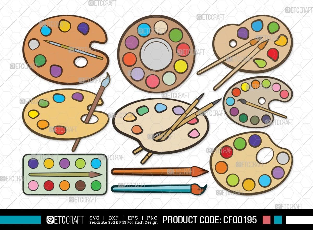 Unleash your artistic prowess with our Paint Palette Clipart and Painting Brush SVG Cut File Bundle. This carefully curated collection offers a delightful assortment of SVG files designed to amplify your creativity and elevate your painting projects.