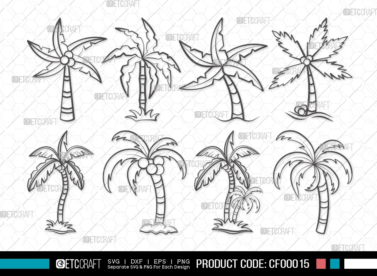 Capture the essence of summer with our Palm Tree Outline Summer Tree SVG Cut File Bundle. This digital design package features an array of palm tree-themed graphics in SVG, DXF, EPS, and PNG formats, allowing you to infuse your projects with a touch of tropical paradise. Whether you're a creative enthusiast or a professional designer, this bundle offers endless opportunities to bring the spirit of summer into your creations.