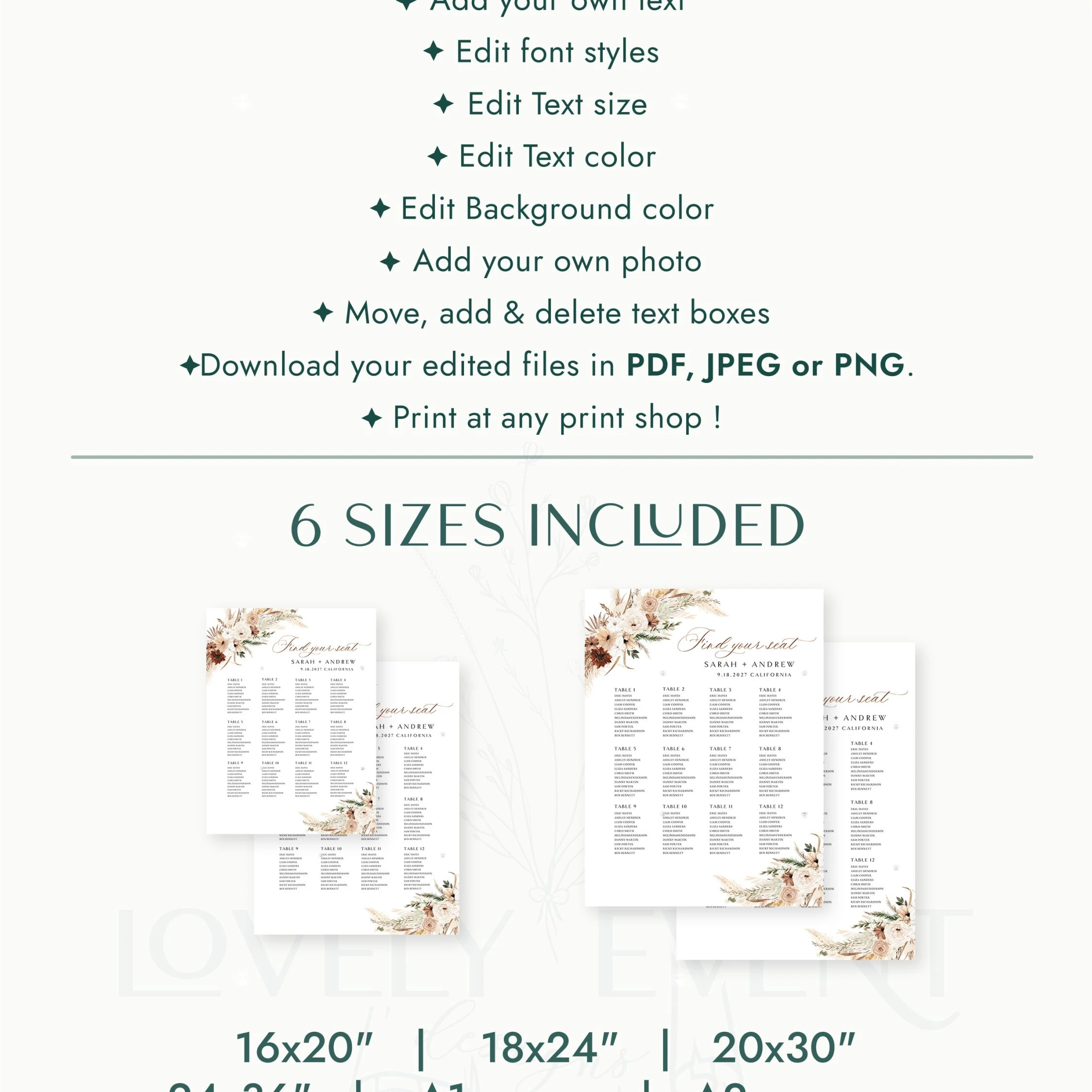 This is a fully editable template. The purchase is just for a digital file. There will be no actual object sent to you. It does not include printing, framing, or other finishing touches.