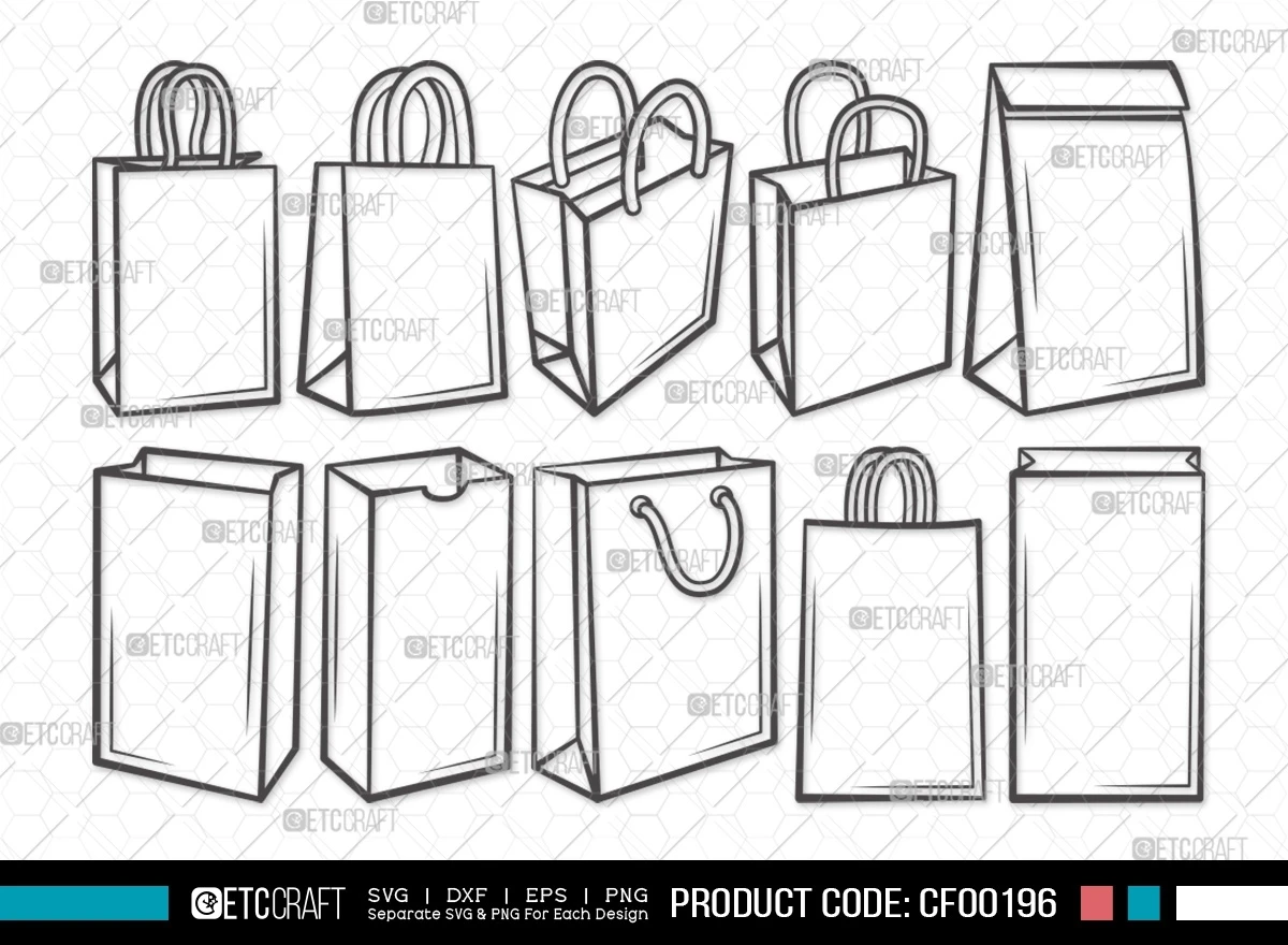 Discover the perfect blend of style and functionality with our Paper Bag Outline Brown Tote Shopping Hand Bag SVG Cut File Bundle. Elevate your creative projects with these versatile and easily customizable SVG files, designed to add a touch of sophistication to your designs.