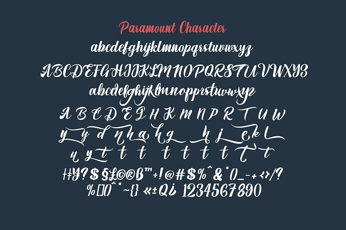 Paramount is an elegant script typeface inspired by a vintage type specimen I found some time ago at an art fair. Thin to thick contrasting lines and elegant curves make Beginta the perfect font for this type of logo and display purposes.