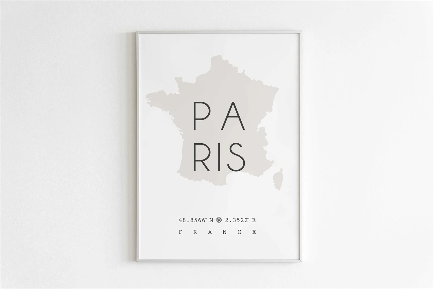 Paris Map Poster Print,Paris Coordinates,French Print,Paris