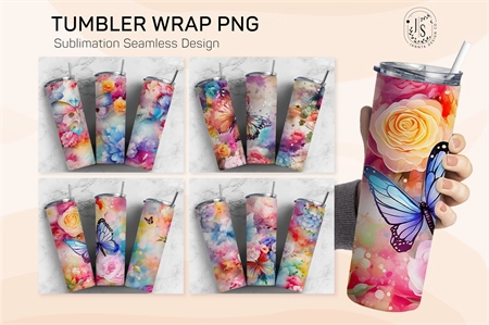 Pastel Butterfly Floral Tumbler Wrap Bundle, Vibrant Flowers Sublimation, Seamless Designs, Tumbler Wrap Bundle, Skinny Tumbler 20oz.