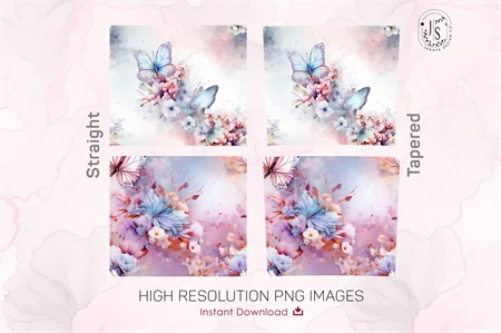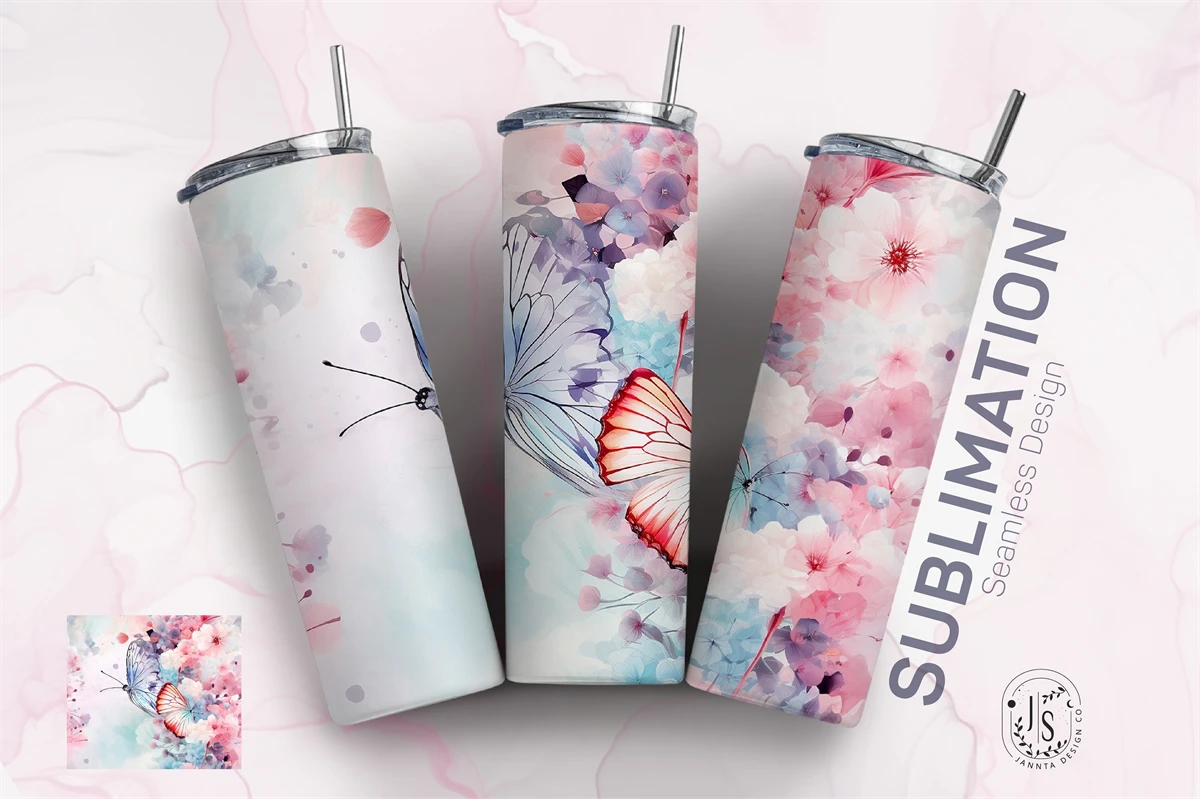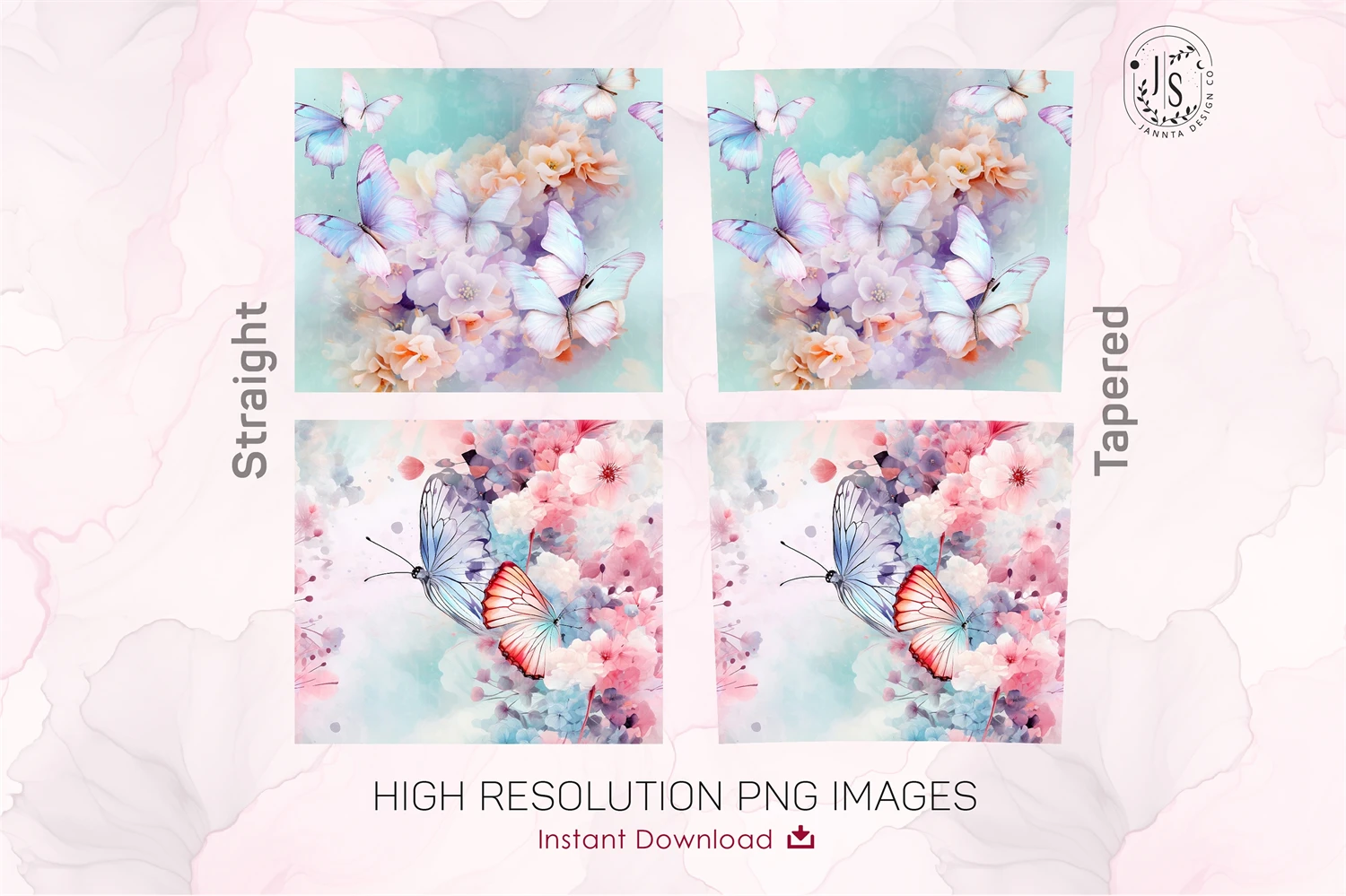 Pastel Butterfly Floral Tumbler Wrap Bundle, Vibrant Flowers Sublimation, Seamless Designs, Tumbler Wrap Bundle, Skinny Tumbler 20oz.