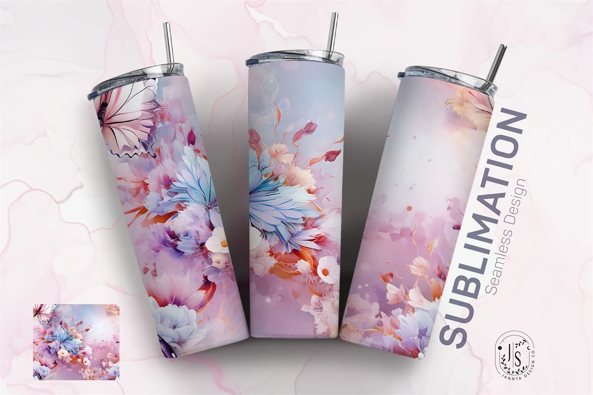 Indulge in the beauty of nature with our Pastel Butterfly Floral Tumbler Wrap Bundle! This enchanting collection features pastel flower sublimation seamless designs, specially crafted to elevate your 20oz Skinny Tumbler. Surround yourself with the mesmerizing allure of blooming pastel blooms and graceful butterflies.