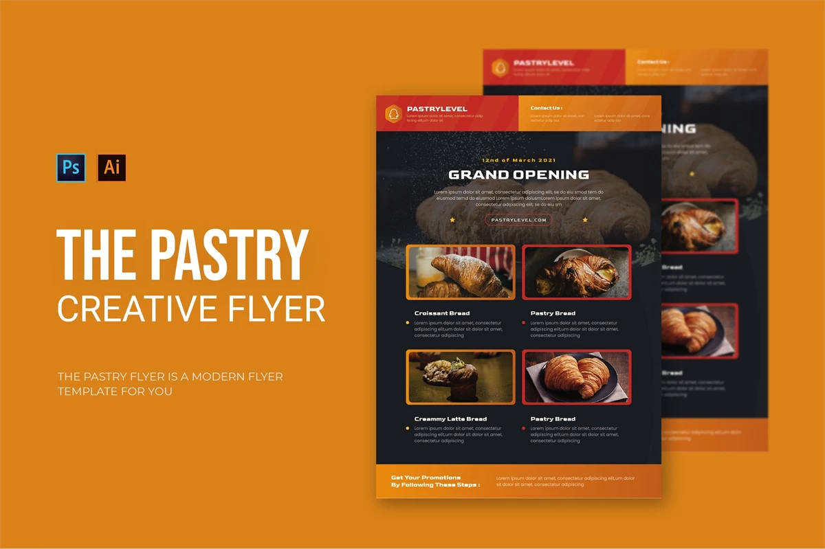 Pastry - Flyer. This Flyer template is designed for your company's business needs. very clean and elegant, and also easily edited and adjusted to your liking