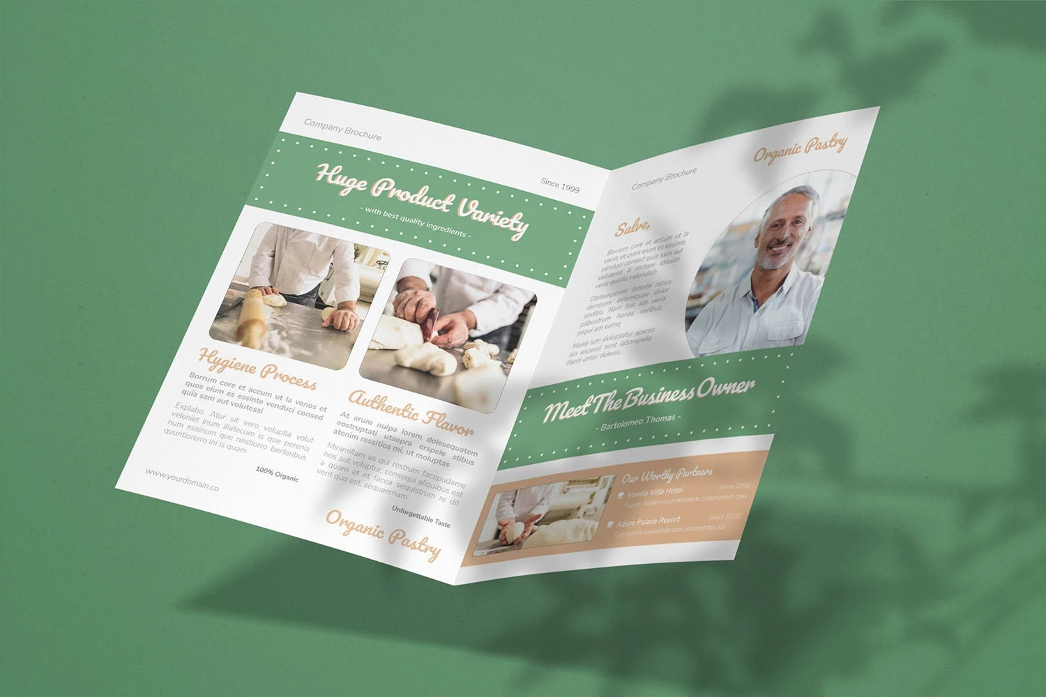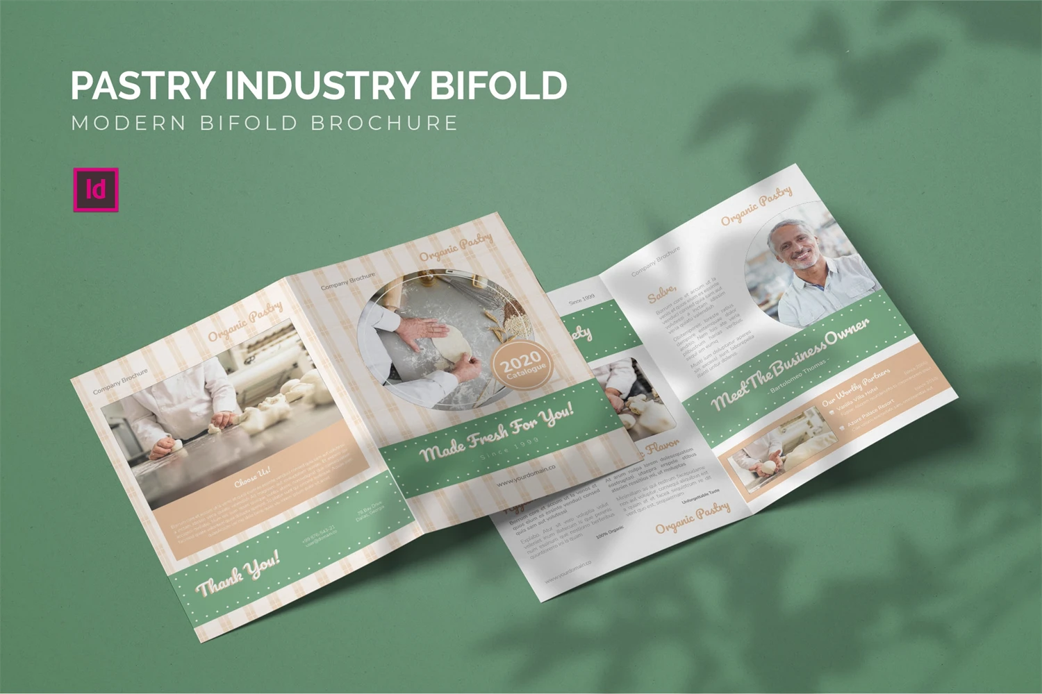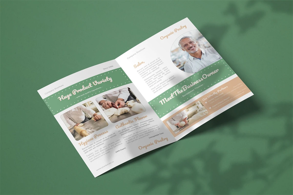 Pastry Industry - Bifold Brochure We present this Bifold Brochure for you, simple and very elegant, and this Bifold Brochure is suitable for all types of your business, made with adobe inDesign, very easy to customize, Hope you Like it, dont forget to rate, Thanks.