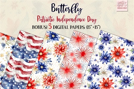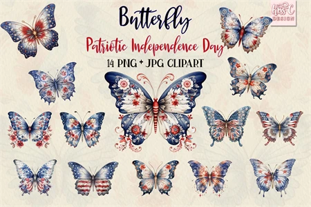 Watercolor Fourth of July Clipart Patriotic Butterfly PNG graphics