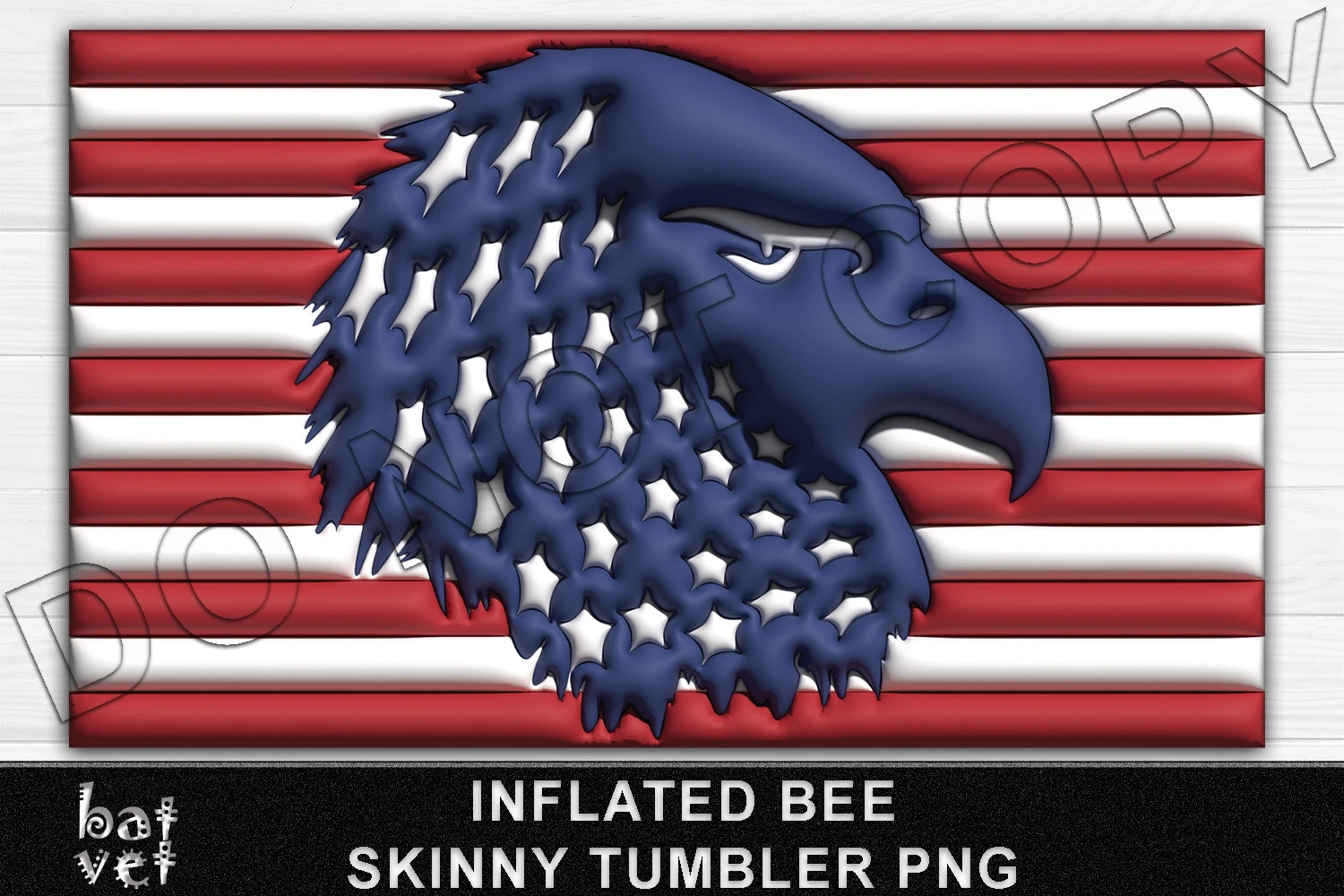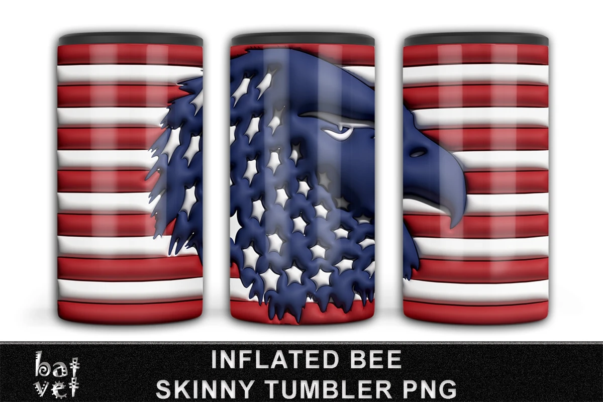 Patriotic American Can Cooler PNG, 3D inflated USA Bald Eagle and Stripes Sublimation.