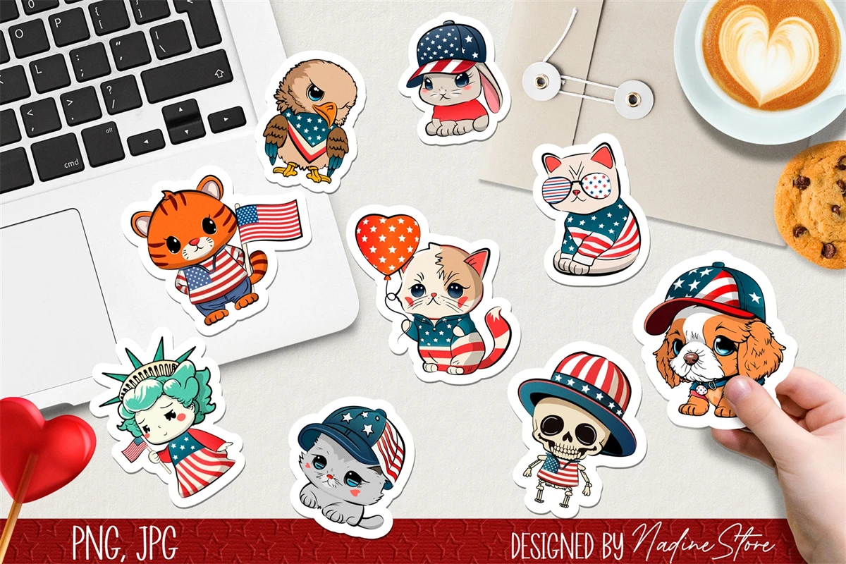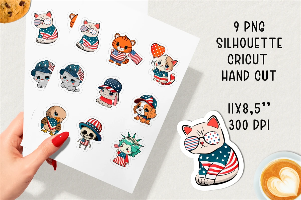 INDIVIDUALLY with 9 PNG stickers, size approx 8'' (transparent background)