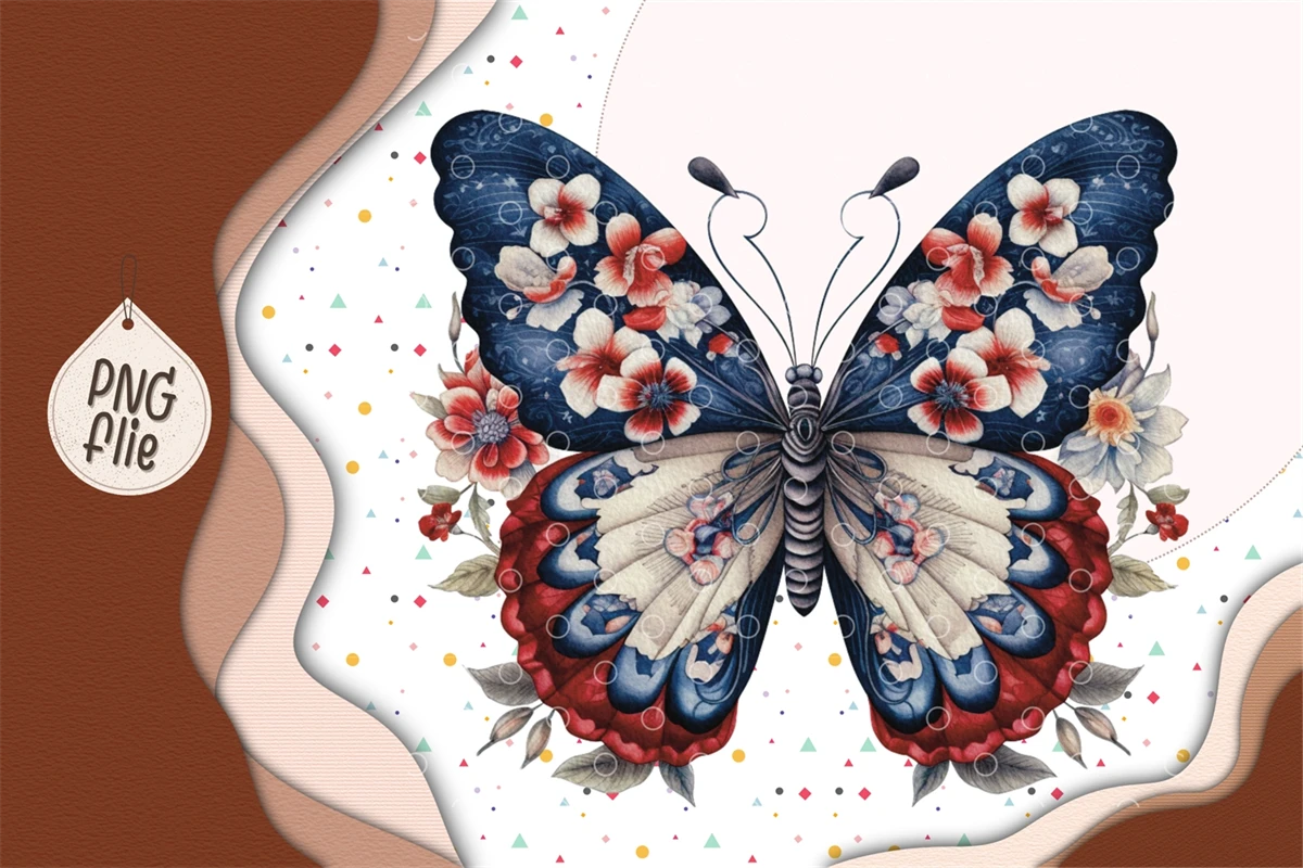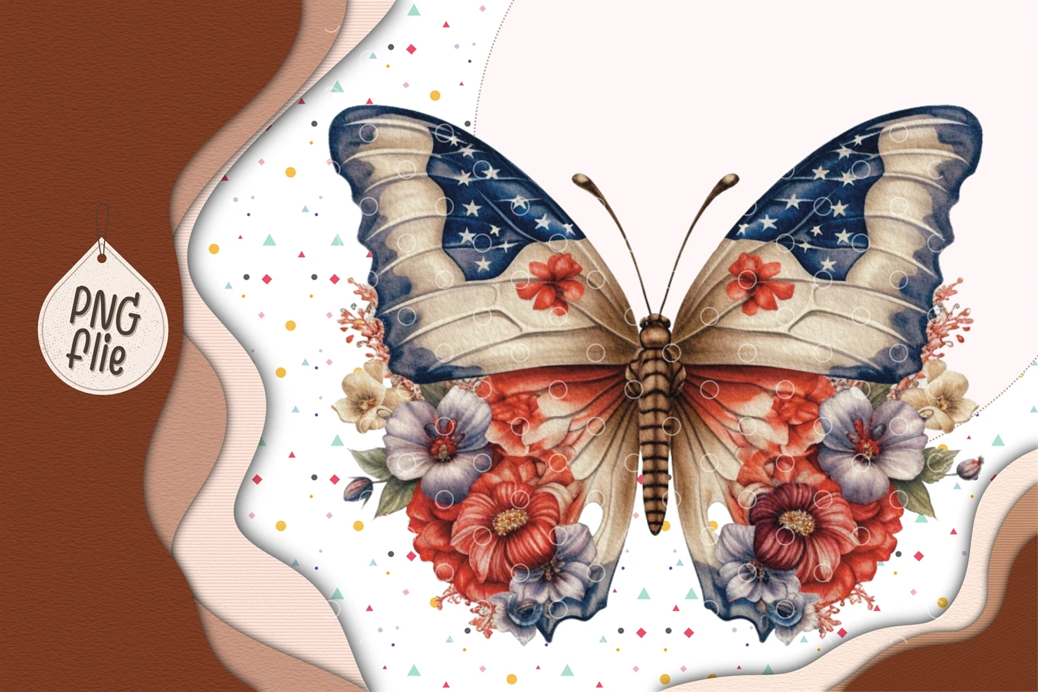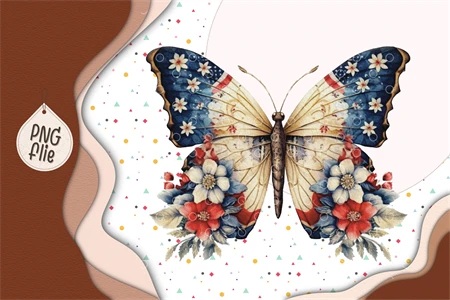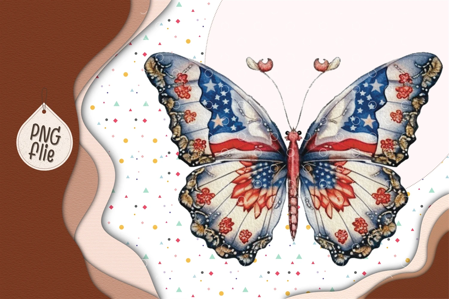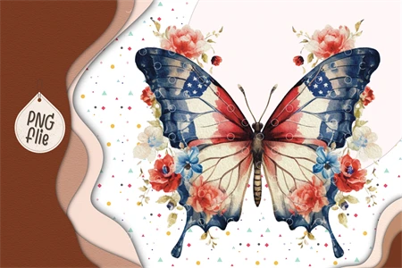 Patriotic Butterfly on the 4th of July in watercolor clipart