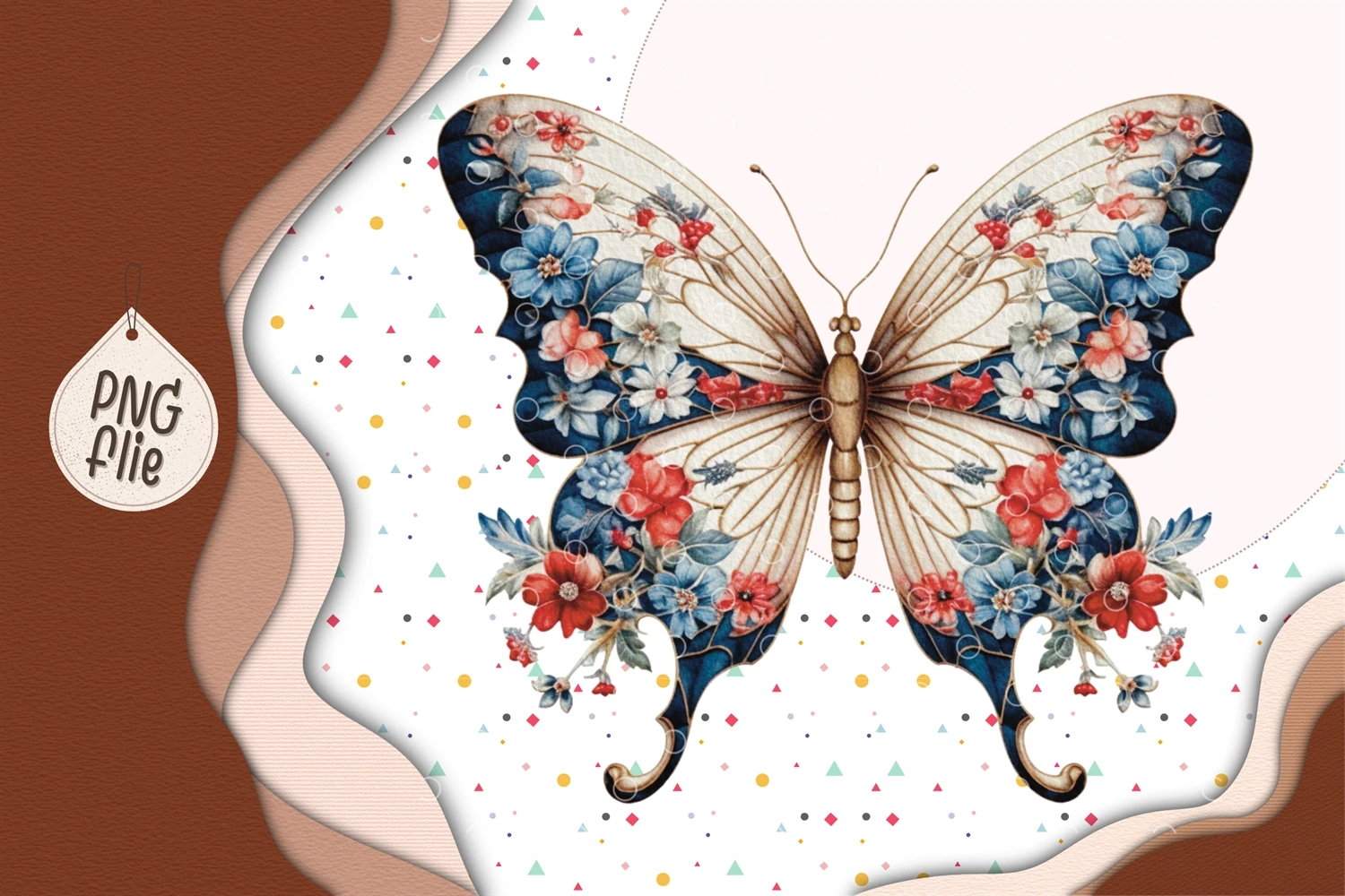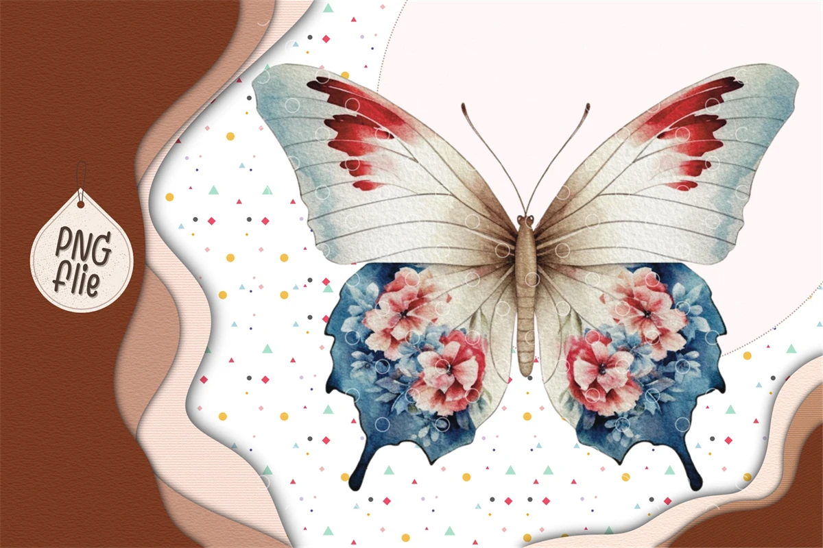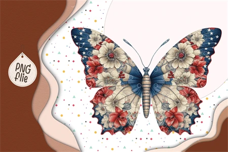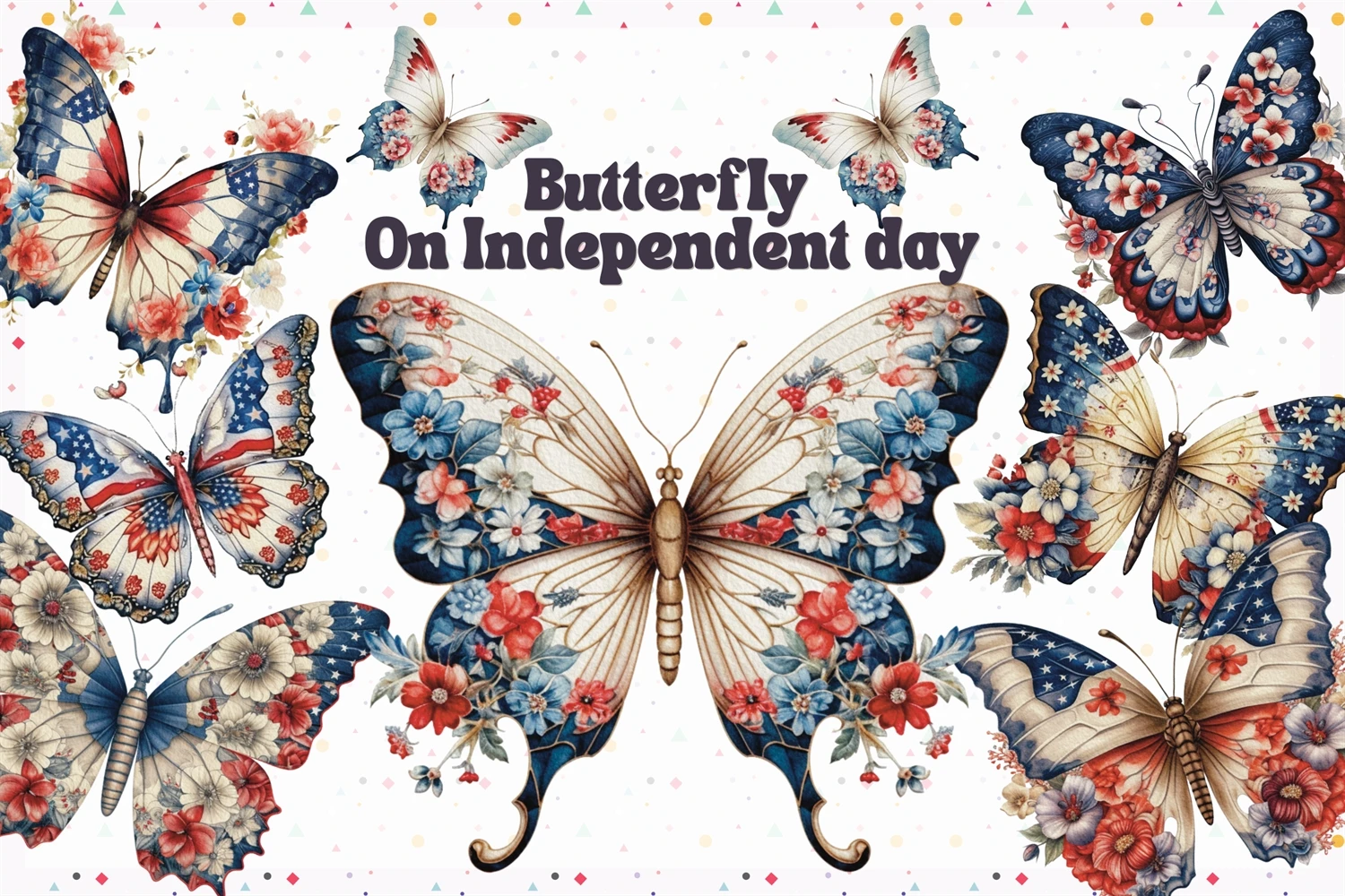 Patriotic Butterfly on the 4th of July in watercolor clipart