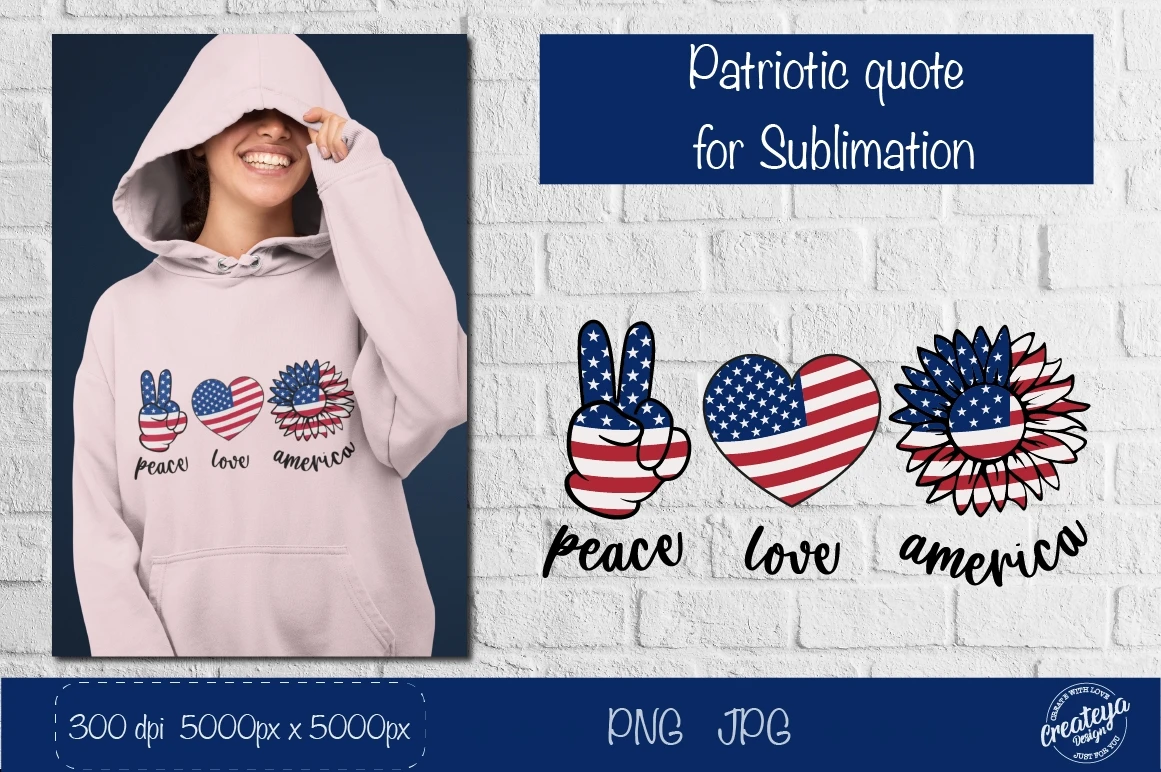 Patriotic and 4th of July quote Peace Love America you can use it for t-shirts, mug, tote, bag and other decoration.