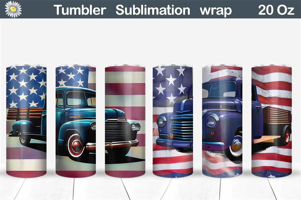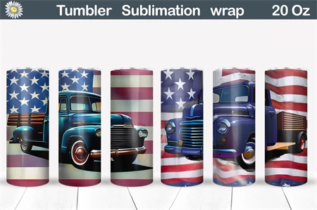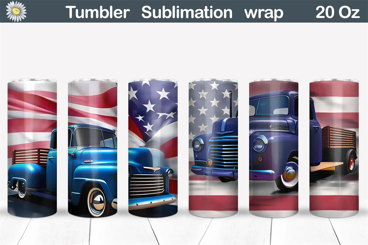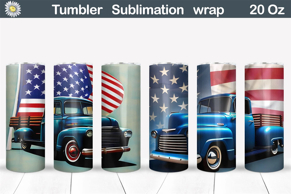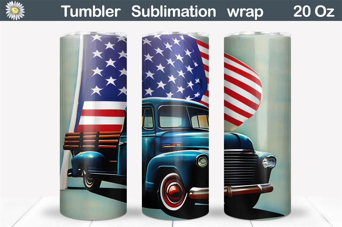 Patriotic Truck Tumbler Bundle. American Flag Tumbler Wrap