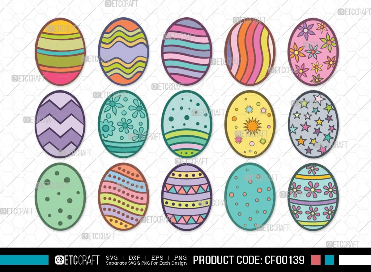 Dive into a world of whimsical creativity with our Pattern Egg Clipart Polka Dot Floral Ornate Designed Eggs SVG Bundle. This collection offers a delightful array of egg designs featuring intricate patterns, polka dots, florals, and ornate details. Let your projects bloom with the charm of these beautifully designed eggs, perfect for a variety of creative ventures.