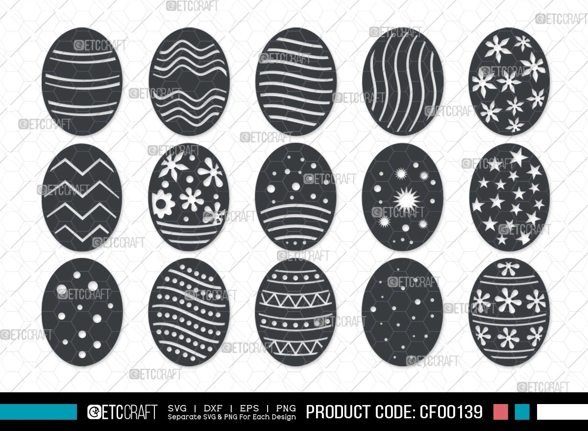 Elevate your crafting projects with our Pattern Egg Silhouette Polka Dot Floral Ornate Designed Eggs SVG Bundle. This versatile collection offers a delightful array of egg designs, featuring captivating silhouettes adorned with polka dots, florals, and ornate patterns. Unleash your creativity and infuse your crafts with the charm of these artistic egg silhouettes.