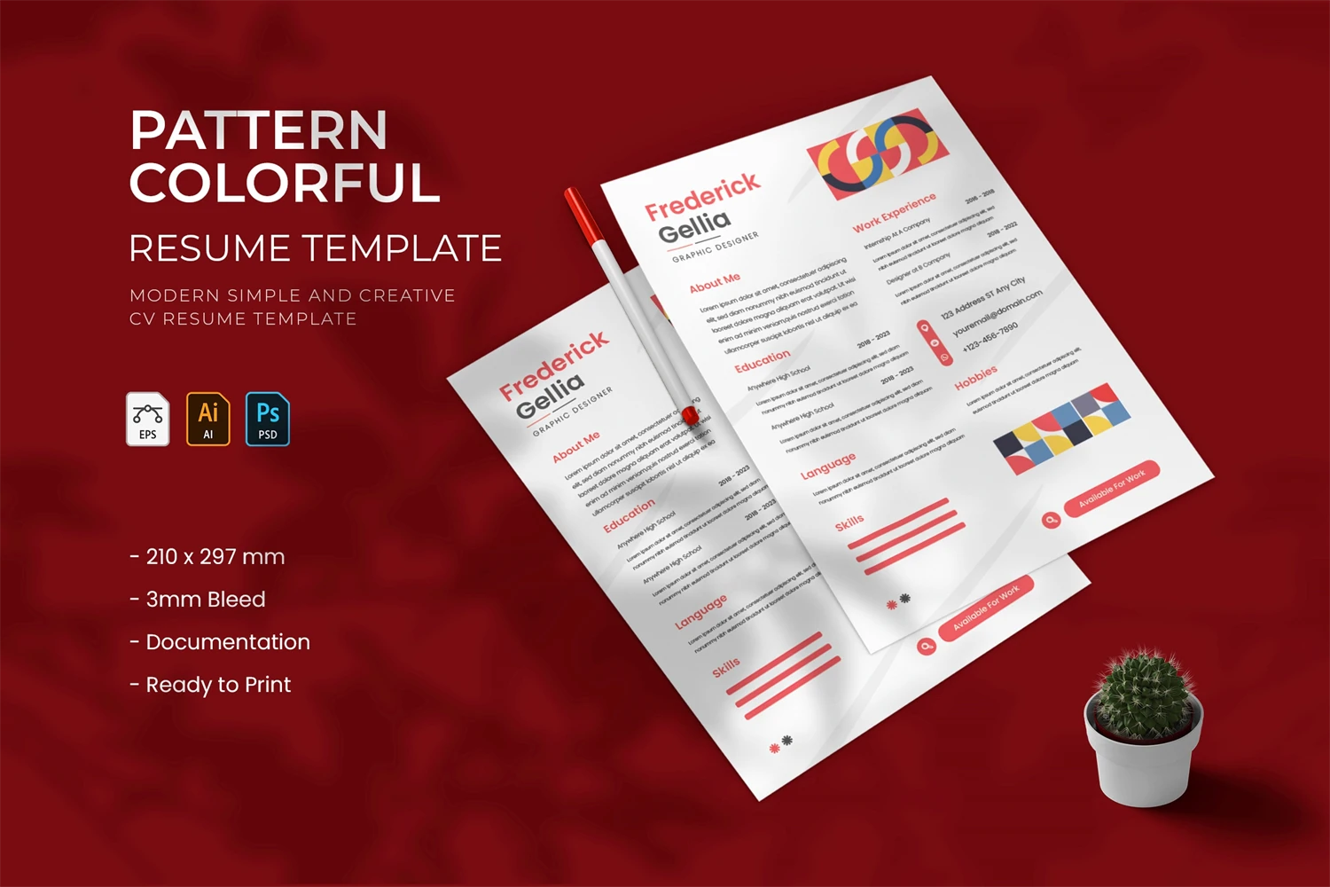 creative resume and cover letter template that will make your resume stand out from the hundreds of resumes employers get. It gives you the information you need, such as your name, contact information, social media links, education, experience, skills and interests. Also, it comes with three different color schemes.