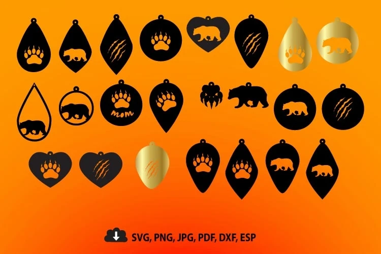This file is perfect for personalized T-shirts, mugs, cards, apparel, cups, stickers and other DIY projects. High quality for best result and easy use!Bear Paw Earring Svg, Earrings