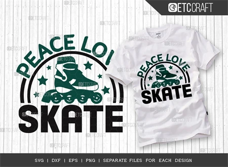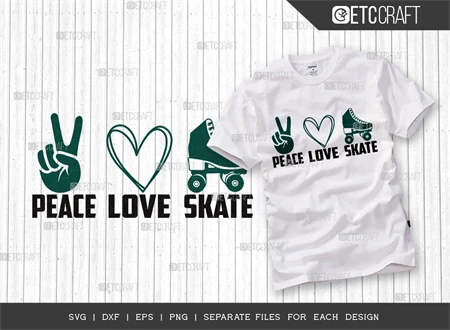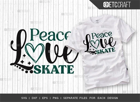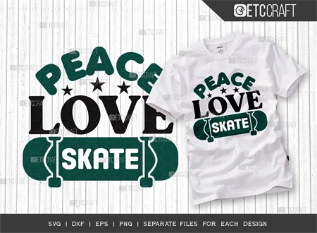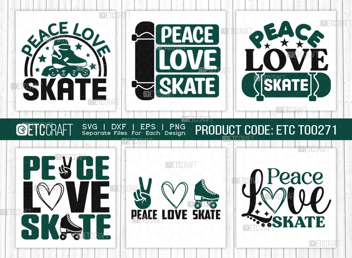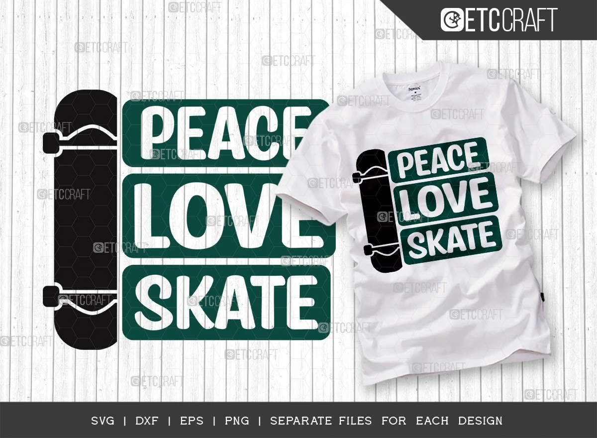 A: The Peace Love Skate SVG Bundle includes SVG, PNG, EPS, and DXF formats for maximum compatibility.
