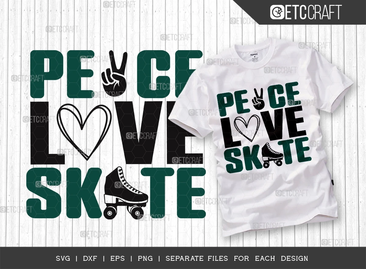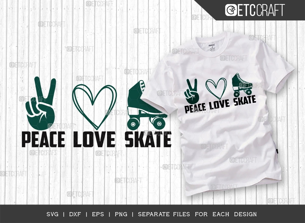 With this one-of-a-kind Peace Love Skate design. It combines elements of peace, love, and skating to create a visually appealing and memorable image.