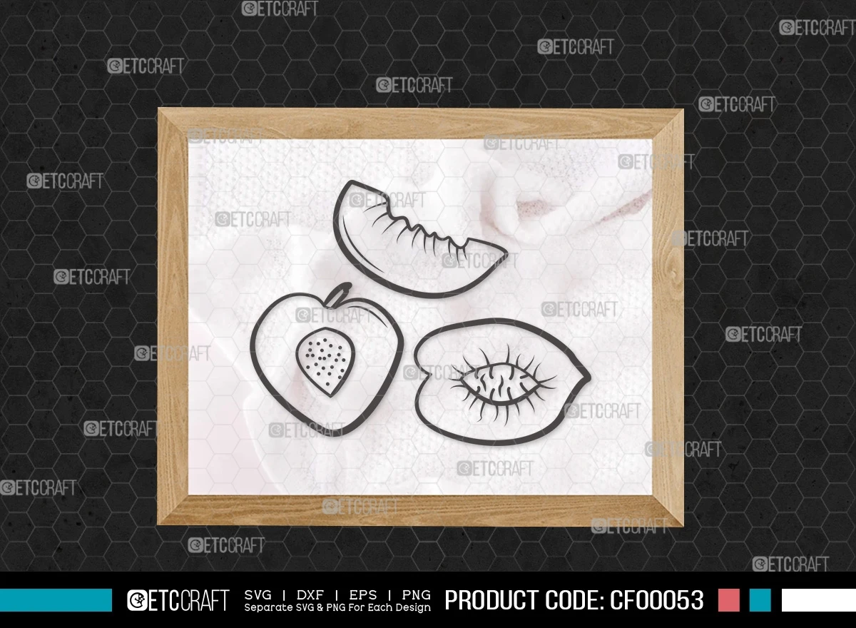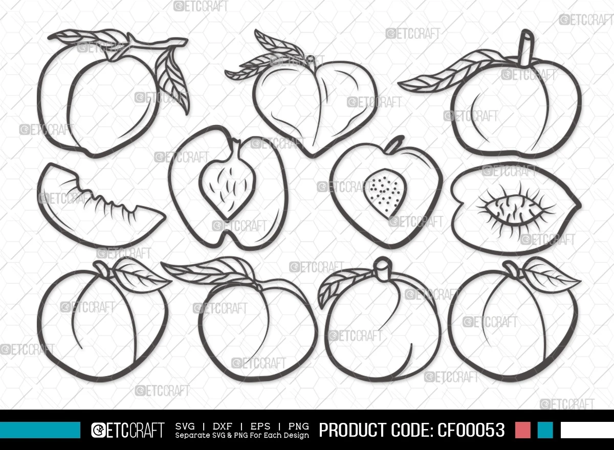 Add a peachy twist to your creative endeavors with our "Peach Outline Summer Fruit Slice" SVG cut file bundle. Let the sweetness of peaches inspire your crafting journey!