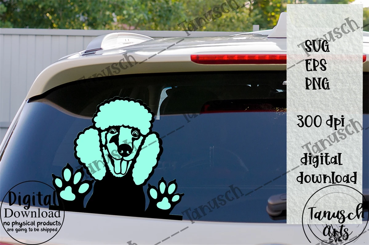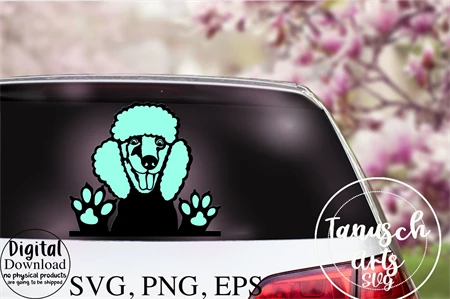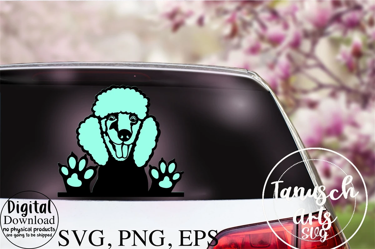 Peeking funny Poodle - cute car rear window sticker hand painted SVG Designs - cut file (SVG, PNG, EPS)