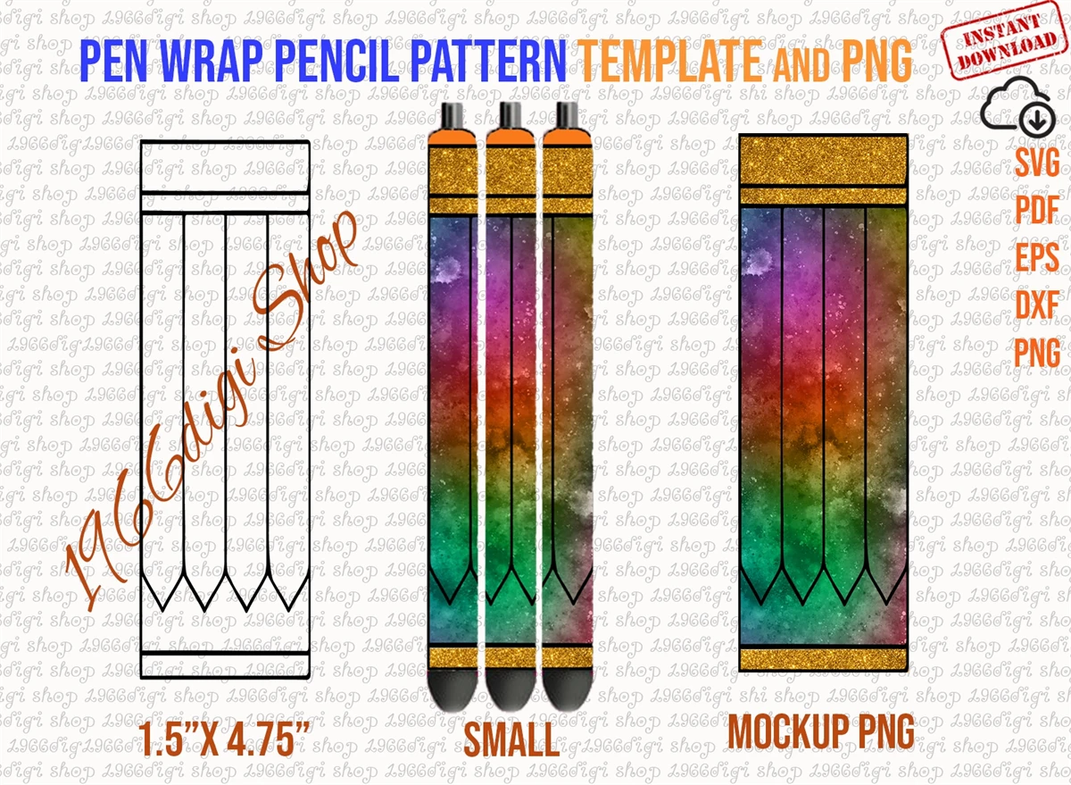 Pen Wrap Pencil Pattern Template Svg, Png, Dxf, Eps, Pdf
