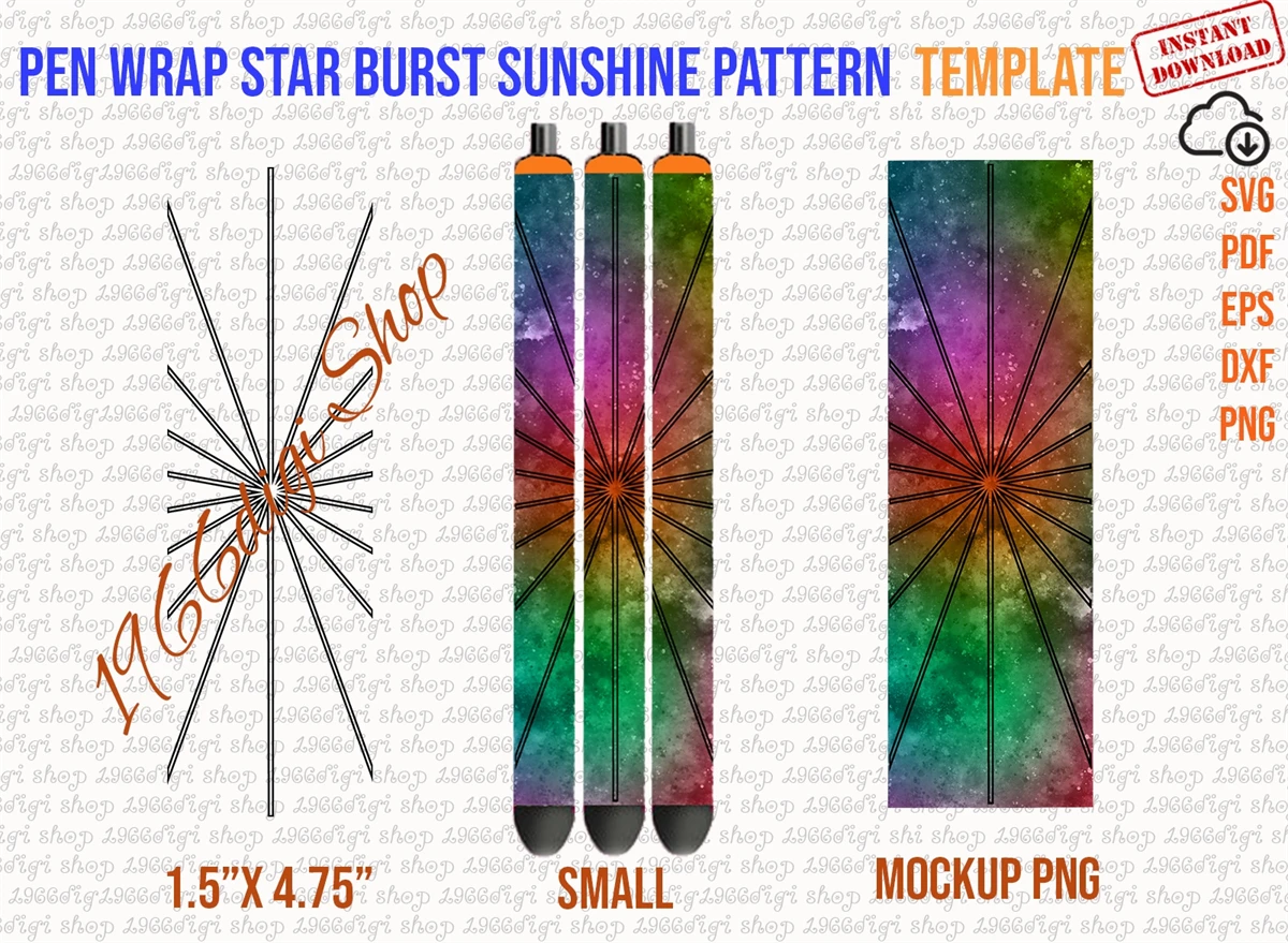 Pen Wrap Star Burst Sunshine Pattern Template Svg, Png, Dxf