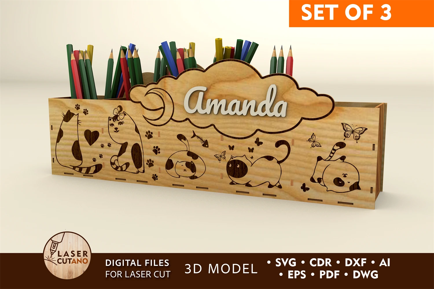 Laser Cut Pencil Box Digital multilayer layout files are specially prepared for the laser cut, CNC router machine and other cutting machines.