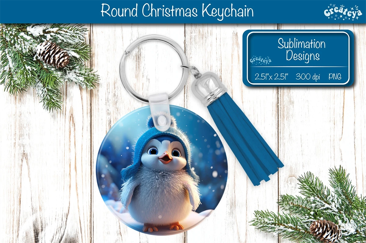 Christmas keychain sublimation designs with cute Christmas Baby Animals print Round Keychain PNG. Christmas Sublimation Round Keychain Perfect as a delightful gift.