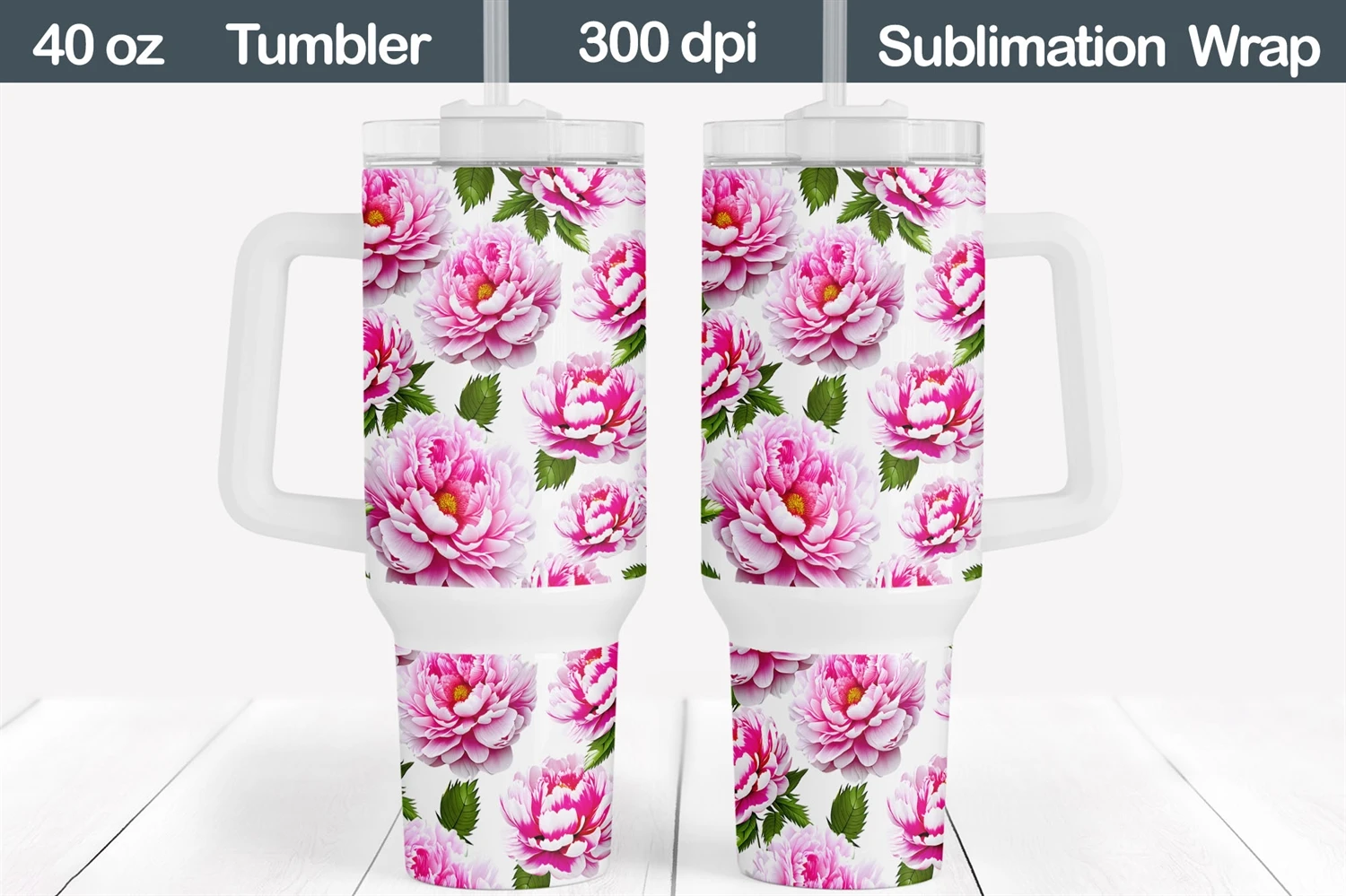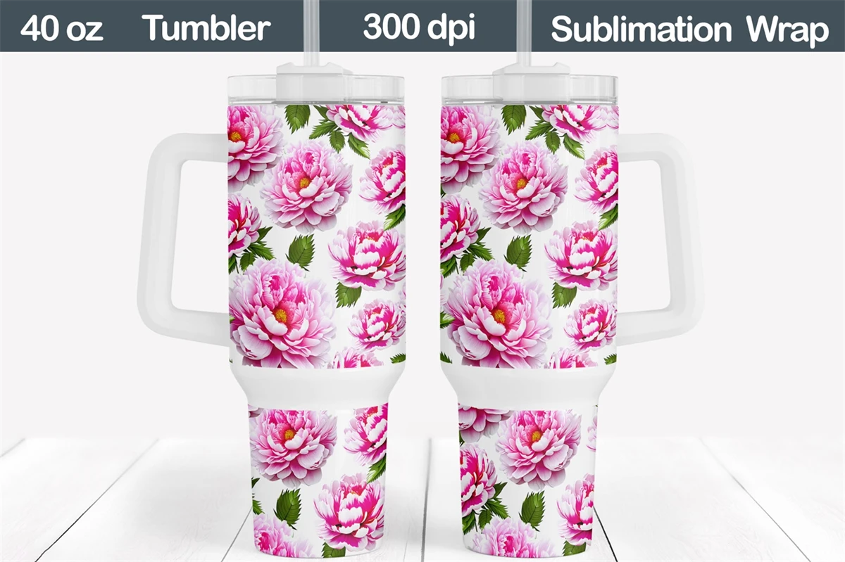Peonies Tumbler Wrap. Pink Flowers Tumbler 40 Oz