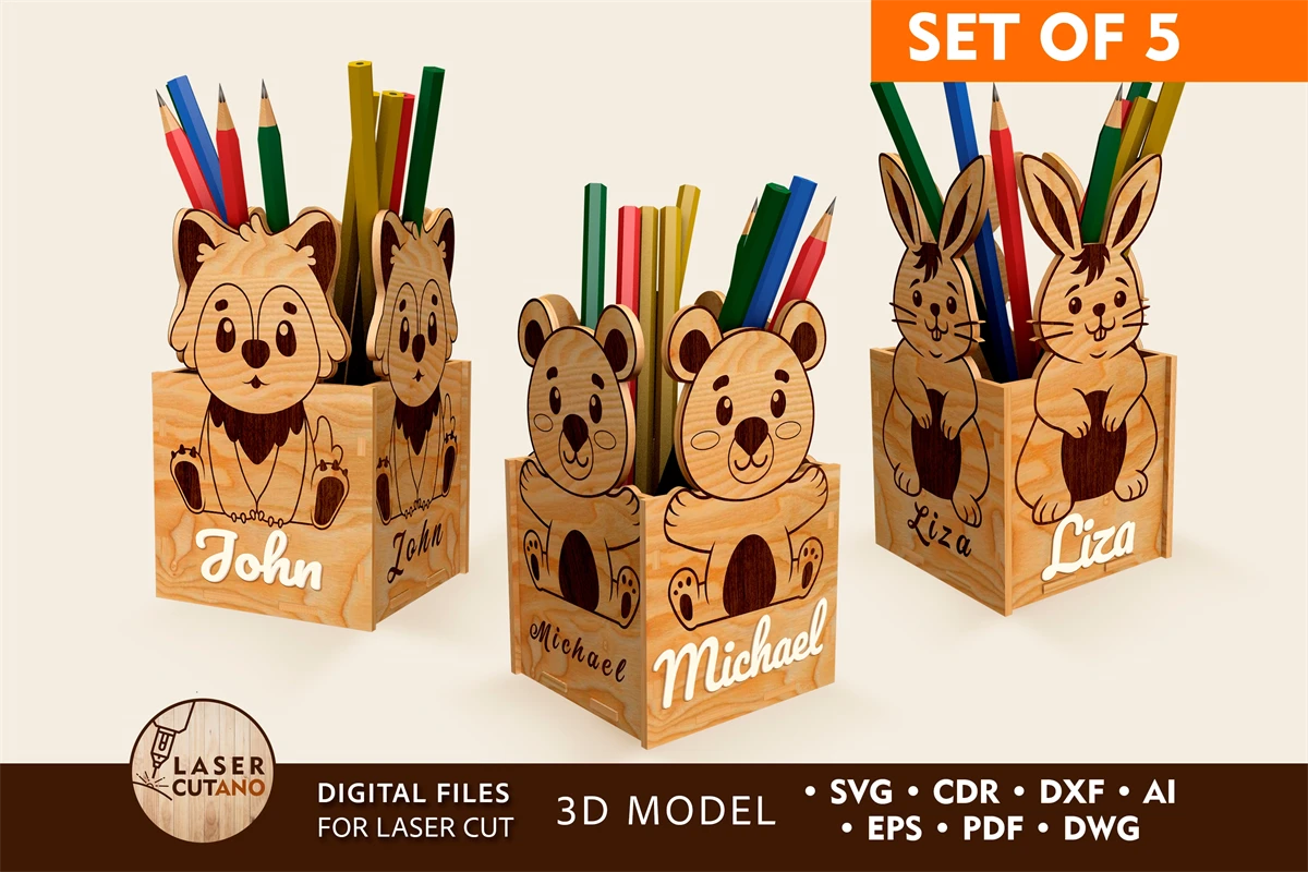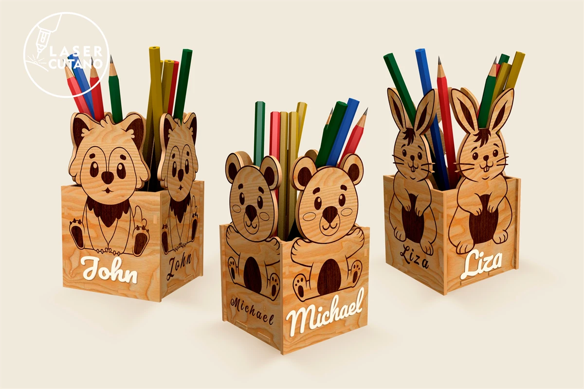 Pencil Holder Digital multilayer layout files are specially prepared for the laser cut, CNC router machine and other cutting machines.