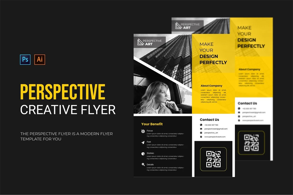 Perspective Art - Flyer. This Flyer template is designed for your company's business needs. very clean and elegant, and also easily edited and adjusted to your liking