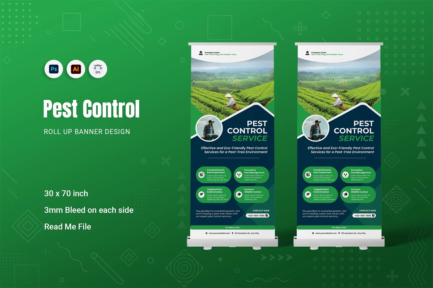 Instantly communicate your brand's through our roll-up banner template. Its standout design is optimized for the impactful presentation of visuals and content alike.